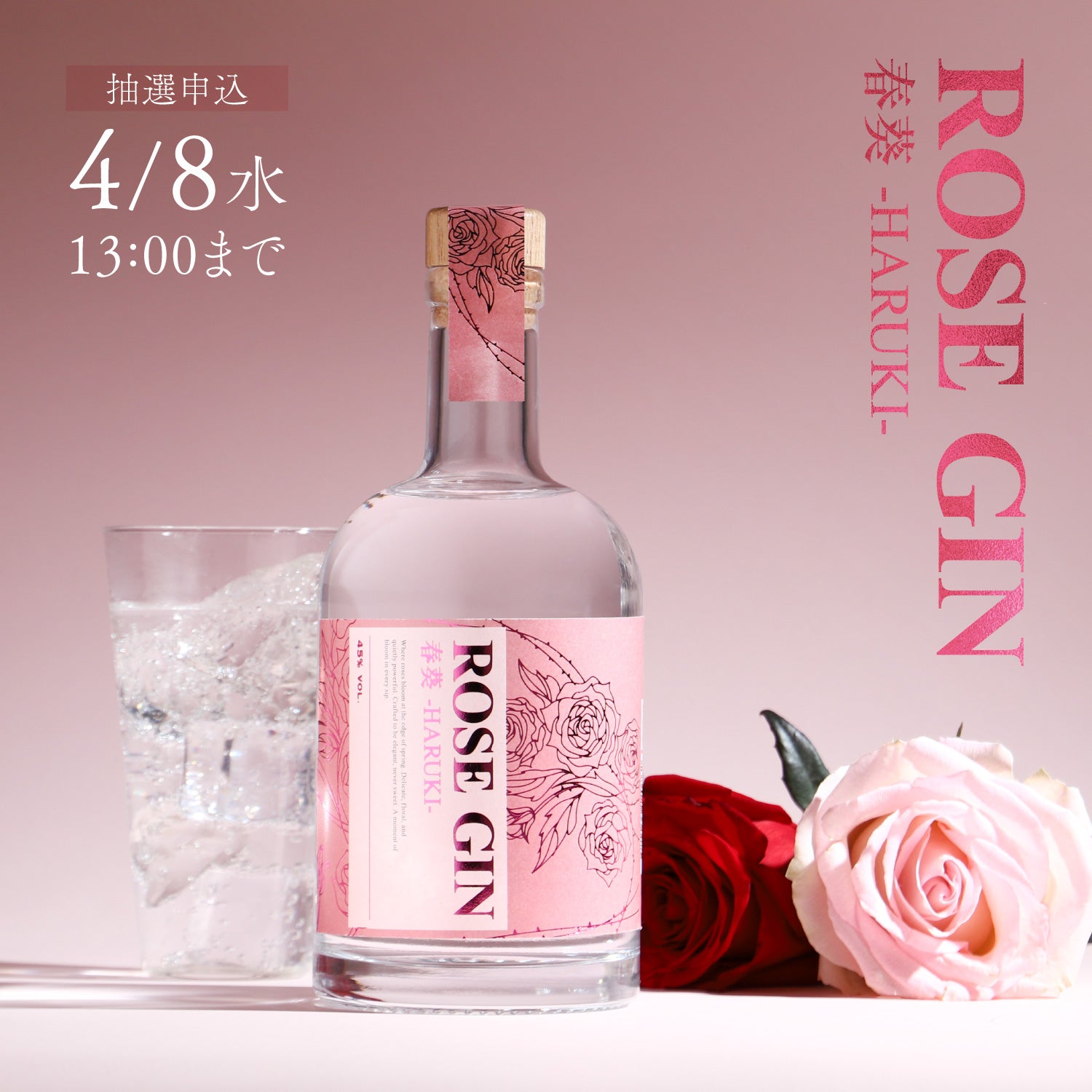 【4月8日まで】国産バラと14種のボタニカルのジン「ROSE GIN 春葵 -HARUKI-」の抽選応募受付を開始