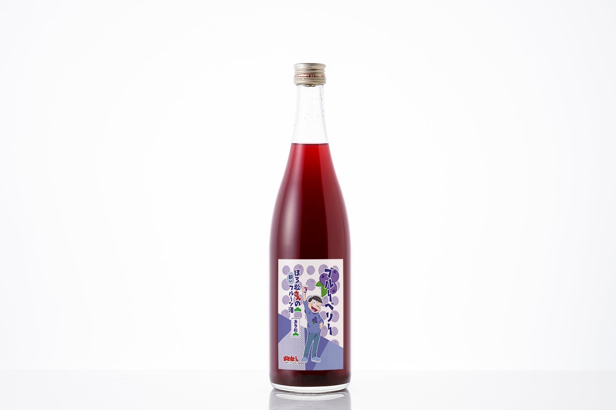 フルーツの飲み物だからついつい飲み過ぎちゃう!?いつの間にか「ほろ酔い」になっている「カラ松」のテーマカラーの青色をイメージしたブルーベリーのお酒です。購入特典は、【オリジナルラベルステッカー】と【限定白雲石吸水コースター(六角)】です。
