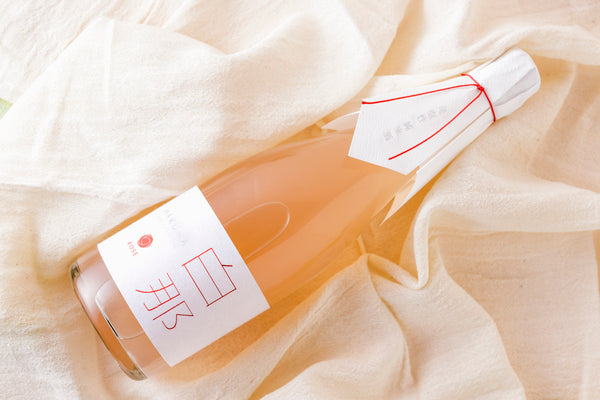上品で美しいお酒を目指し、赤い色素を生み出す「赤色酵母」を使用することにより、優しく淡い赤色の見た目のお酒に仕上げました。瓶のなかで舞う「雪の結晶」は、お米の旨味成分。日本酒はお米をアルコール発酵させたあと、濾過して透き通った液体にしていきます。「白那 Rose」は、この濾過の過程であえて目の粗い袋でお酒を濾し、「おり」と呼ばれる旨味成分をお酒の中に残しています。
