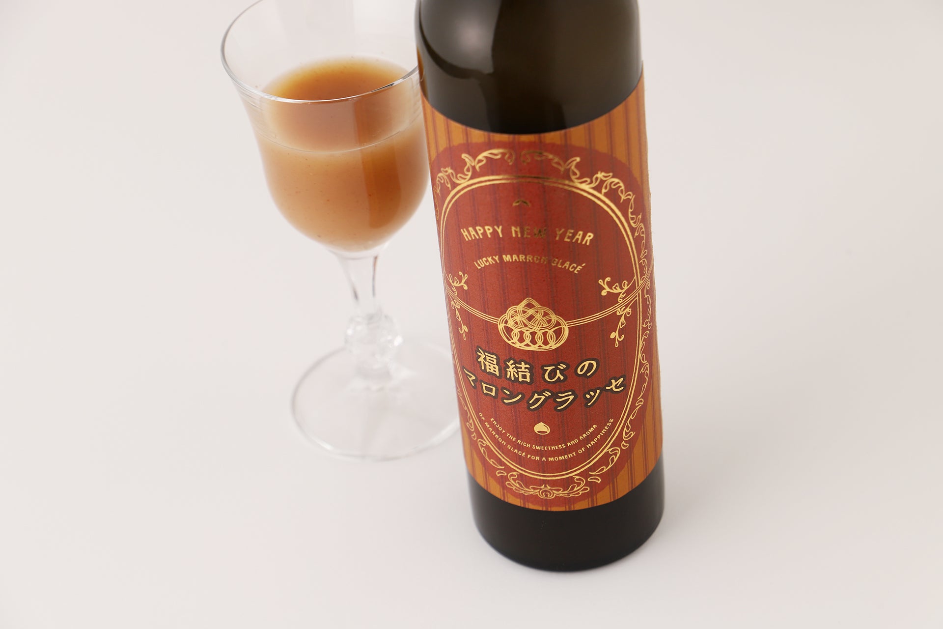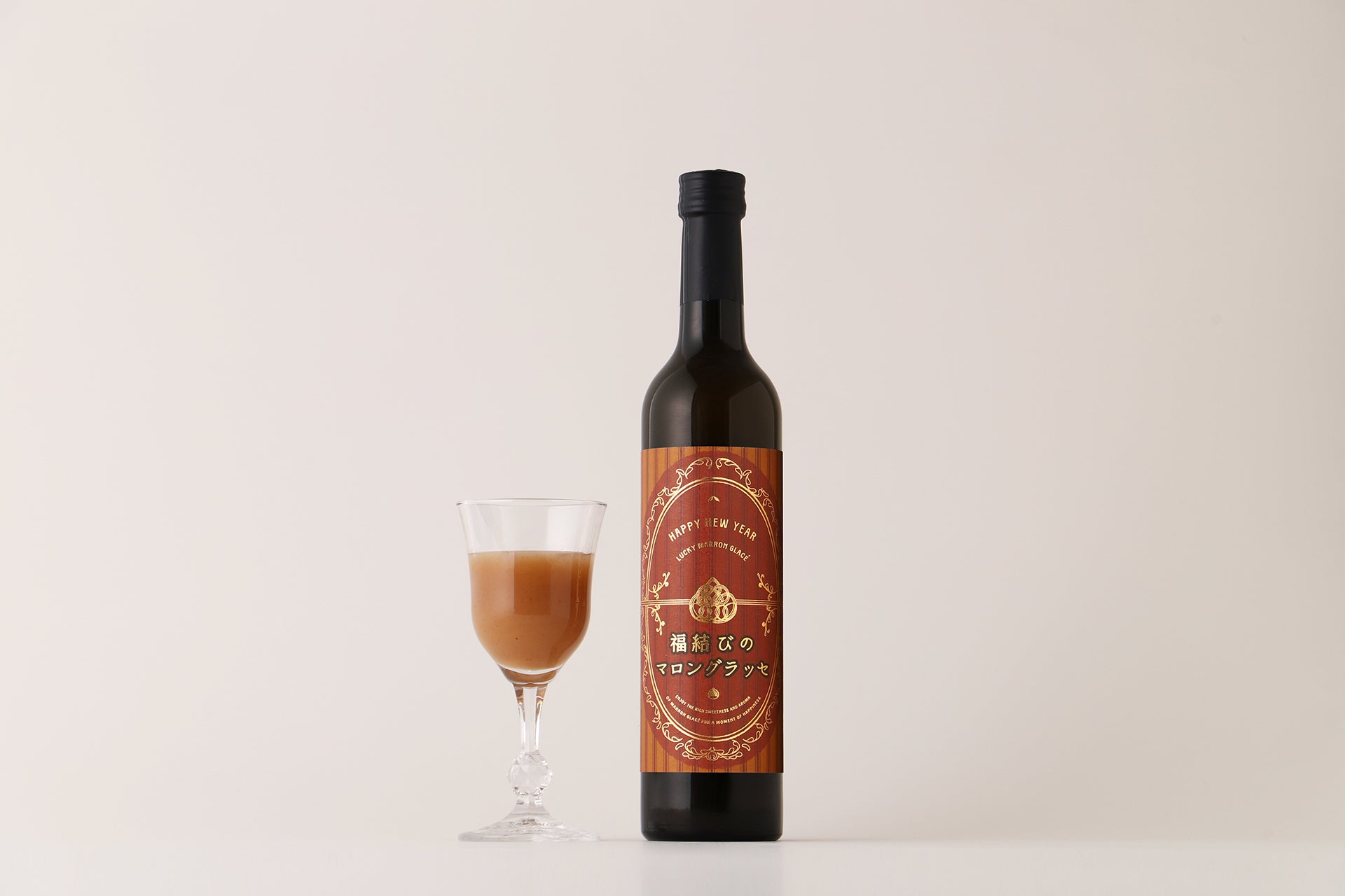 「福結びのマロングラッセ」は、和栗を使った甘くリッチなデザートリキュール。黒糖のやわらかなコクとカラメルの深みが加わり、まるで高級洋菓子のように上品な味わいに仕上げました。新年のはじまりに幸福を結ぶ、華やかなデザートタイムをお届けします。