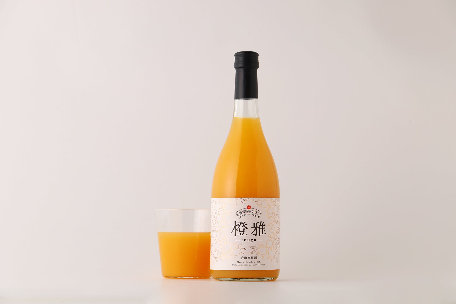 濃厚な甘みが魅力の愛知県産みかん「はるみ」を贅沢に100%使用したお酒。純米大吟醸酒の上品な香りとまろやかさが、柑橘の甘酸っぱさを優しく包み込みます。年末年始の至福のひとときに華やぎを添える、特別な柑橘酒です。