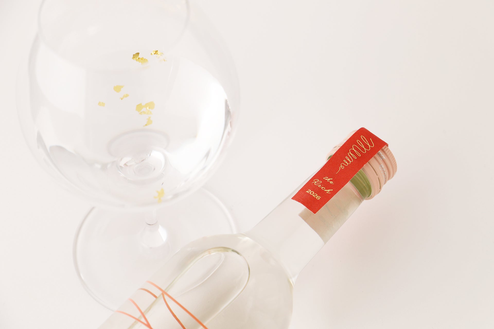 お正月を華やかに過ごす横に、mumeが寄り添えれば。その思いから造られたのが「mume the rich」です。通常のmumeより梅の使用量を1.5倍に増量。さらに梅を漬け込む期間を延ばすことで、酸味と旨みもより濃厚に「リッチ」に感じられるように仕上げました。付属の金箔も飲む際に加えて、「リッチ」なお正月をお過ごしください。