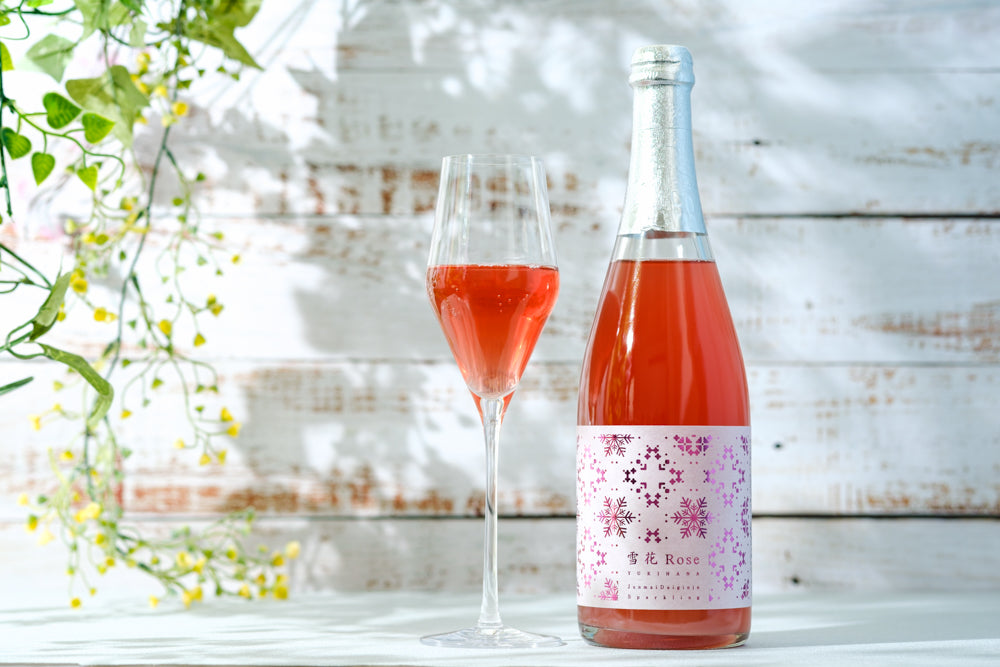 ふわりと花びらが舞うような、うすにごりのロゼスパークリング日本酒です。新潟県の酒米「五百万石」による、お米の豊かな香りと甘みを感じます。赤色酵母由来のピンク色が美しい、エレガントな味わいです。