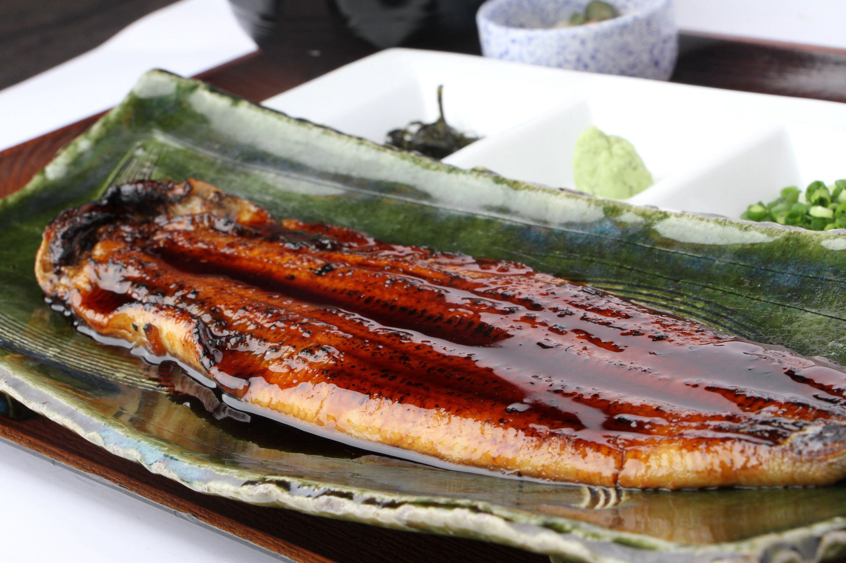 (たれは蒲焼きの追いタレに、わさびは白焼きにつけてお召し上がり下さい)