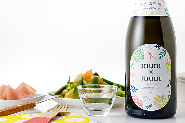 福島県二本松市のクリアな水と良質な酒米でつくられた、天然発泡のナチュラルな純米大吟醸のスパークリングです。 「菊のまち二本松」でつくった日本酒なので「mum×mum(マムバイマム)」と考えました。