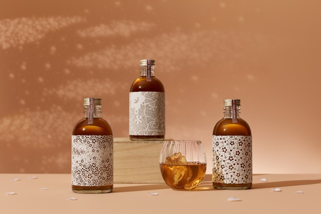 ボトルを包む白いラベルは、紀州文化の一つである型紙の梅文様。細かな文様の窓から覗いている、時をかけて色づいた琥珀色の液体。それはまさに琥珀色を愛でながら味わうための特別なデザイン。特別な日や、特別な人に、「UMESHU THE AMBER」の時間を届けてみては?