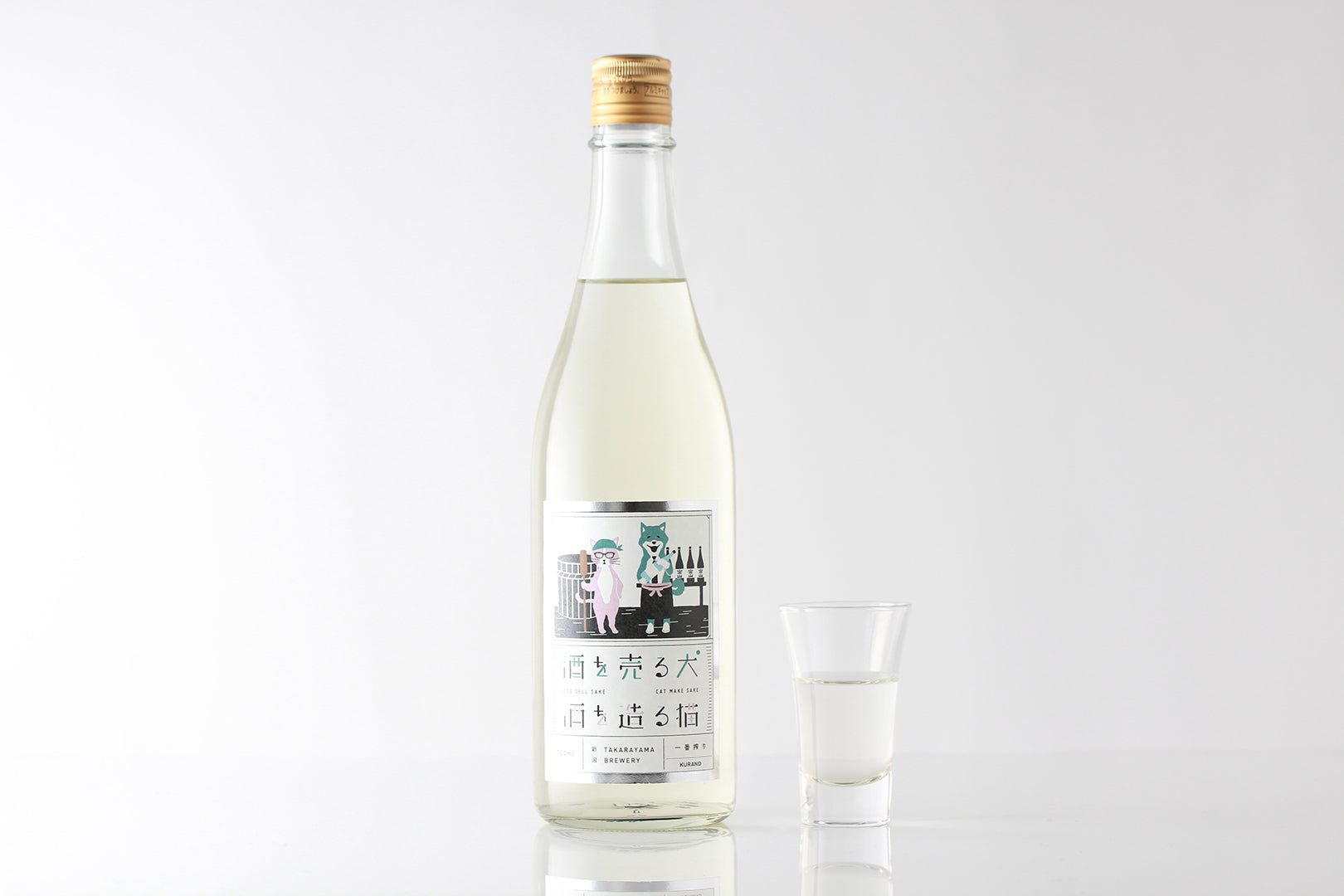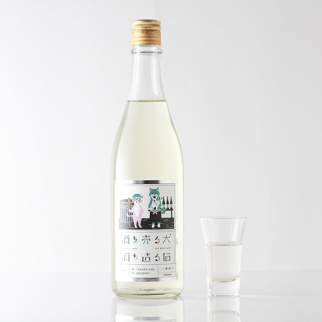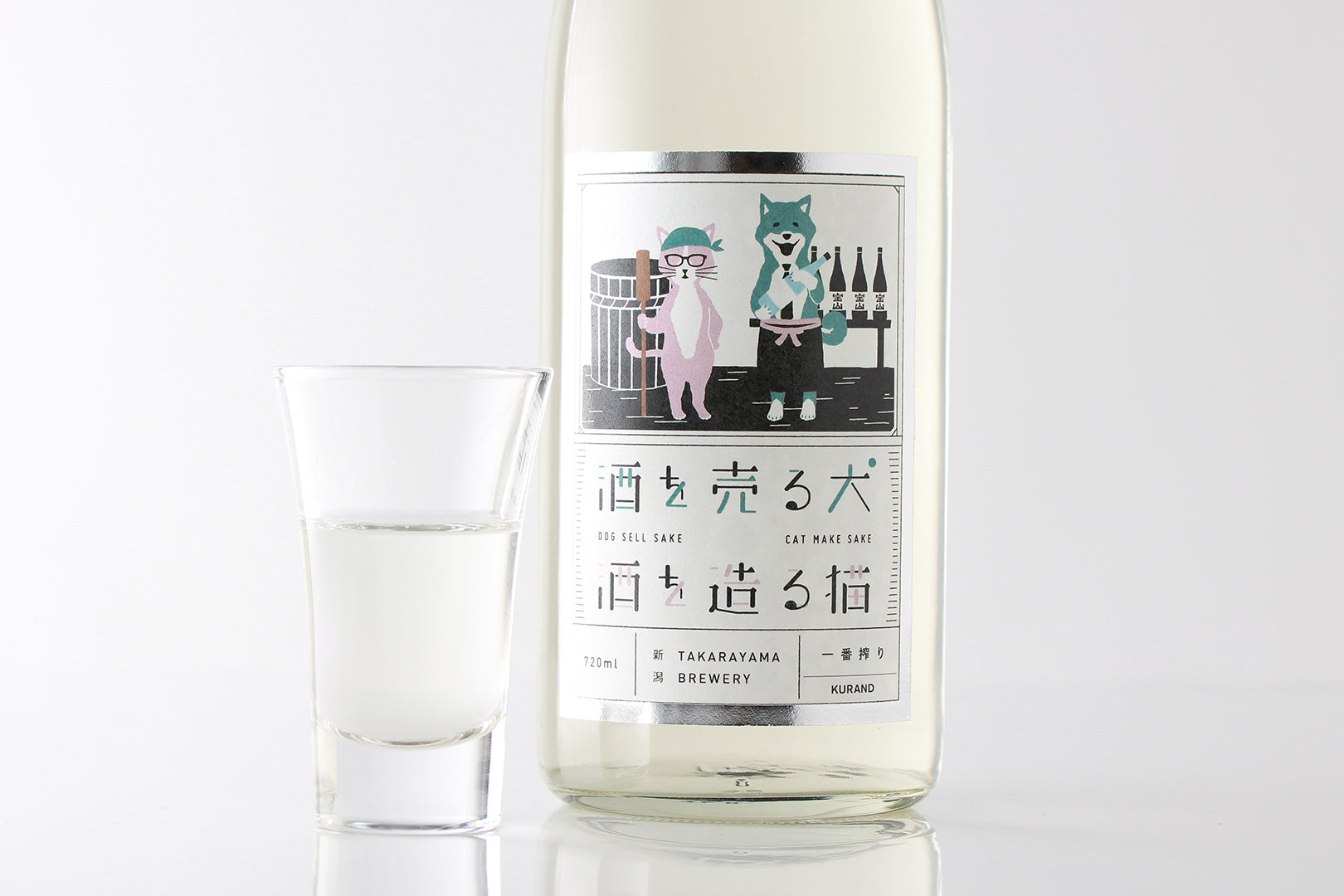 宝山酒造の次期当主の渡邉さんと営業の若松さんは、大学の同級生。宝山酒造には看板猫がいて、かつ渡邉さんが無類の猫好きであること、そして、人懐っこい性格の若松さんが犬に似ていることから、2016年に「酒を売る犬 酒を造る猫」(略称「犬猫」)がブランドとして誕生しました。搾りたての味わいを表現した爽やかなラベルデザインにもぜひご注目ください。