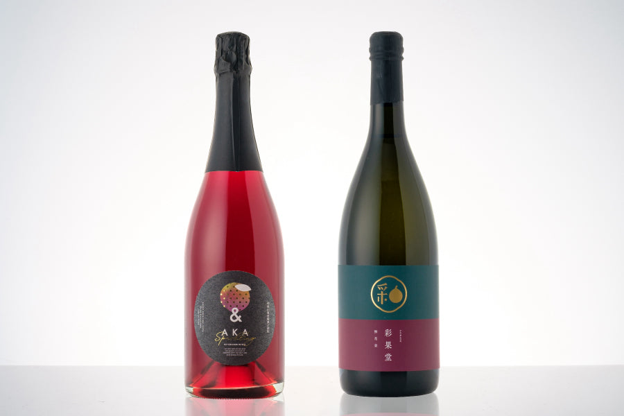 ホームパーティーや大人女子会に持ち寄りたい!Yotoさんがレコメンドするお酒「&AKA Sparkling」「彩果堂 -SAIKADO- 無花果」の合計2本が入ったセットです。