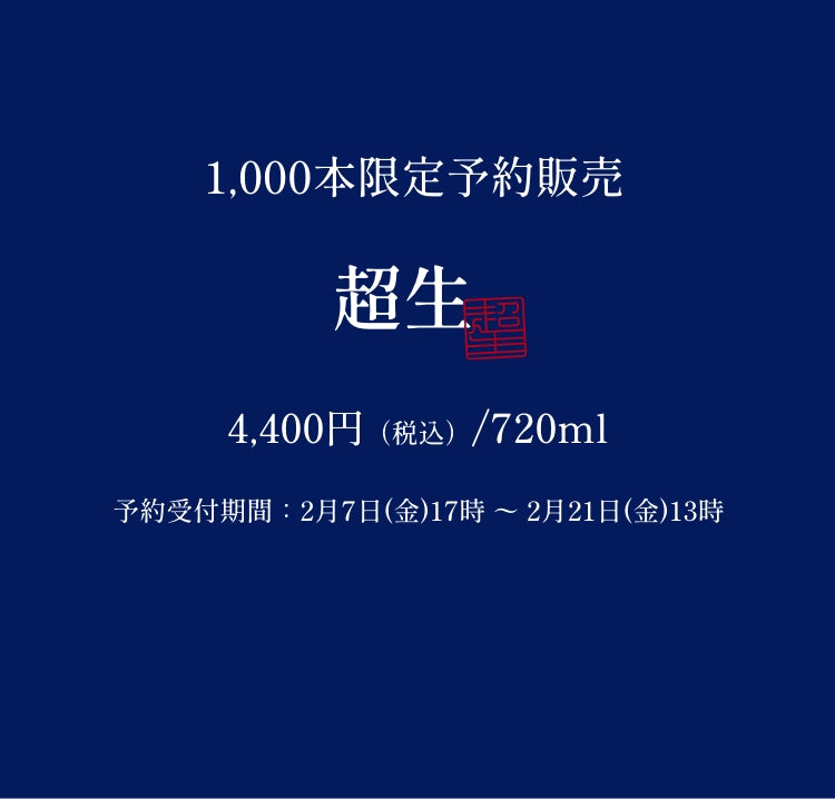 「超生」は7月上旬以降、順次発送となります。 他の商品も同時にご注文いただけますが、「超生」と一緒にまとめての発送となります。