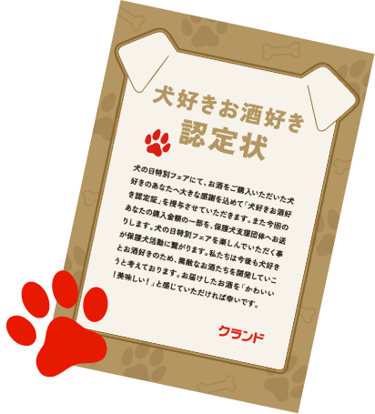 犬の日フェア期間中に「いぬのさけ」をご購入いただいたお客さまへ、感謝を込めて「犬好きお酒好き認定証」をプレゼント!