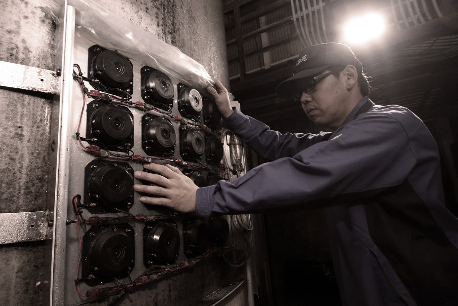 鹿児島県薩摩川内市に蔵を構える「田苑酒造」では、1990年より音楽仕込みを導入。現在ではすべてのタンクに音楽が届くように焼酎づくりをしています。音楽仕込みによって生まれるのは、角のないまろやかな口当たり。「永ノ雫」は、オーク樽熟成を経た後、クラシック音楽を聴きながら12年間タンクで眠りにつきました。 【酒蔵で流れる名曲たち(一部抜粋)】 ベートーベン/交響曲 第6番 「田園」 第1楽章 モーツァルト/「ディベルティメント」 第17番 ビバルディ/バイオリン協奏曲 「四季 春」 など