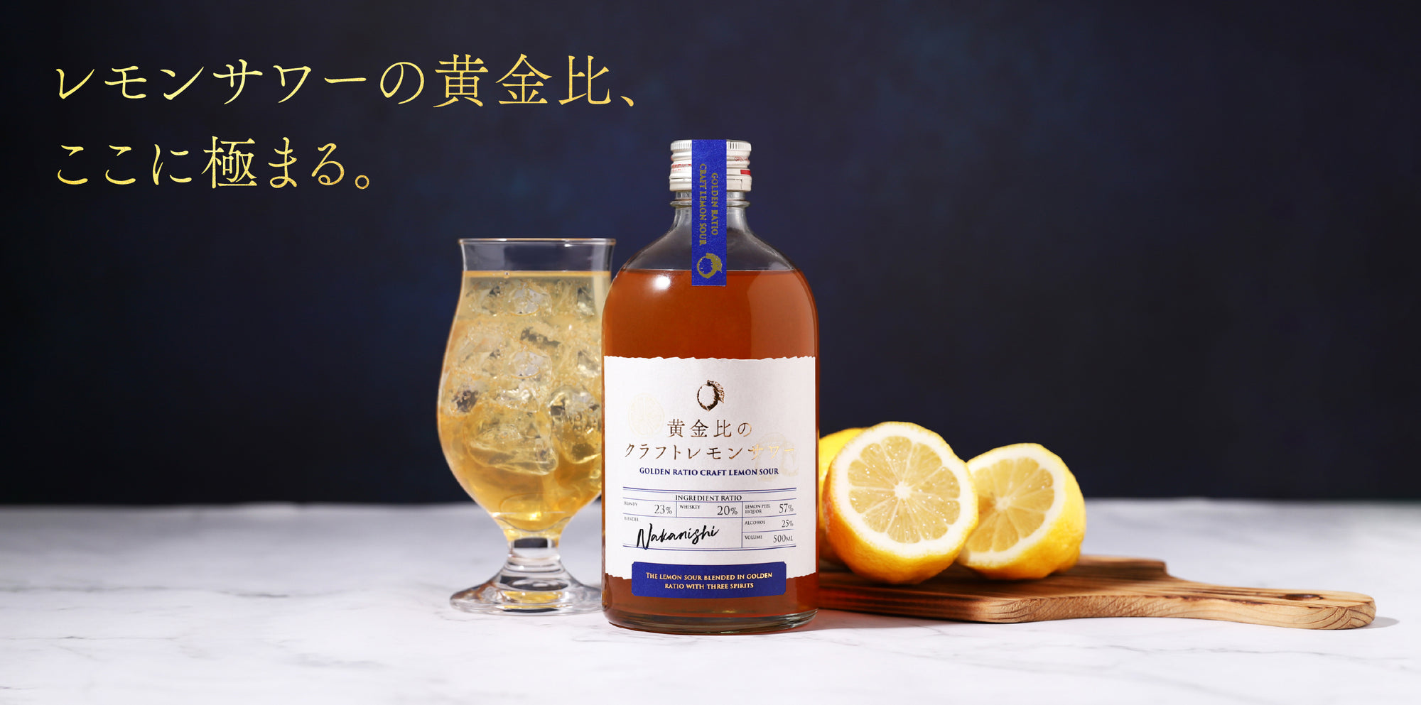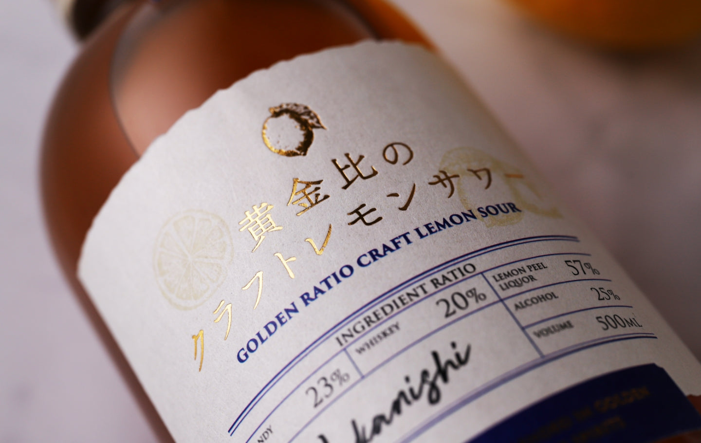 ワンランク上のレモンサワーをつくるため、掛け合わせたのは3つのお酒。レモンの果皮をじっくりと浸漬させたリキュールをベースに、国産ウイスキー、そしてブランデーを合わせて。味わいを調整する「ブレンダー」と呼ばれる職人が、3つの原酒を少しずつ調合しながら、その仕上がりをじっくりと吟味。3種が調和したバランスのよい味わい目指し、「ブランデー23%:ウイスキー20%:レモンリキュール57%」の黄金比 に辿り着きました。