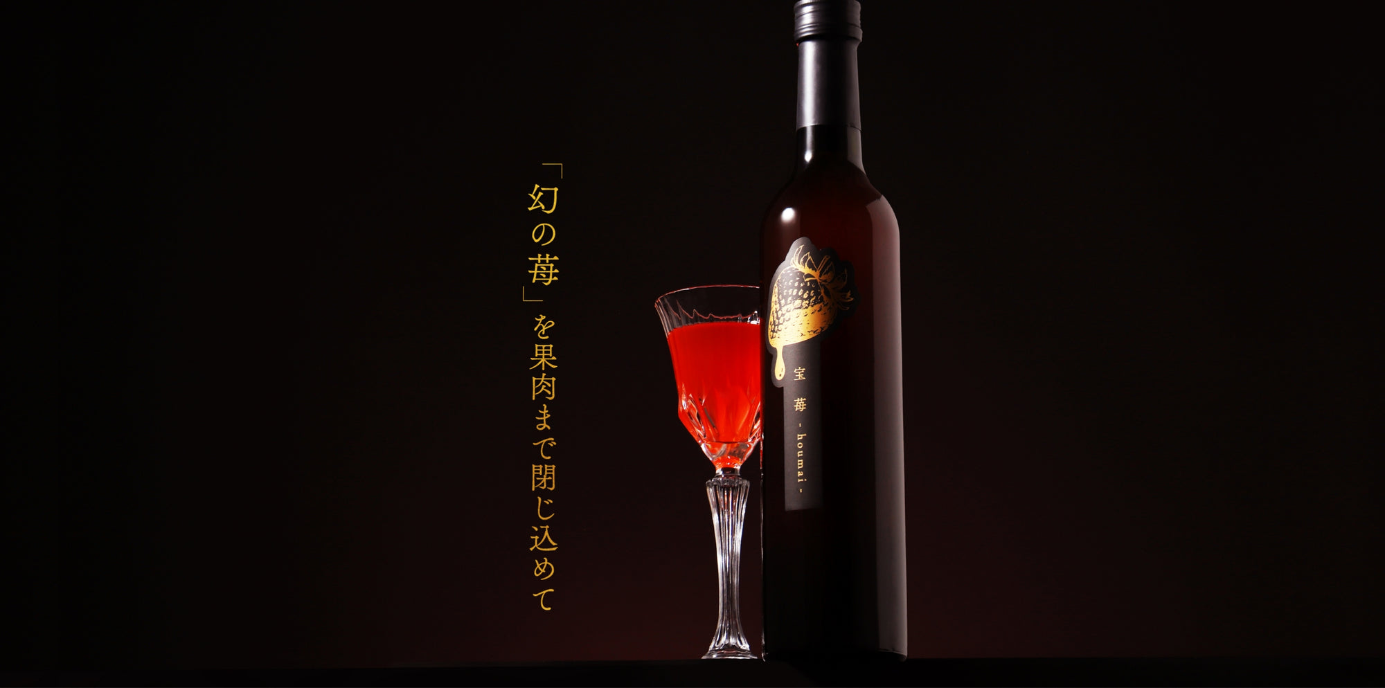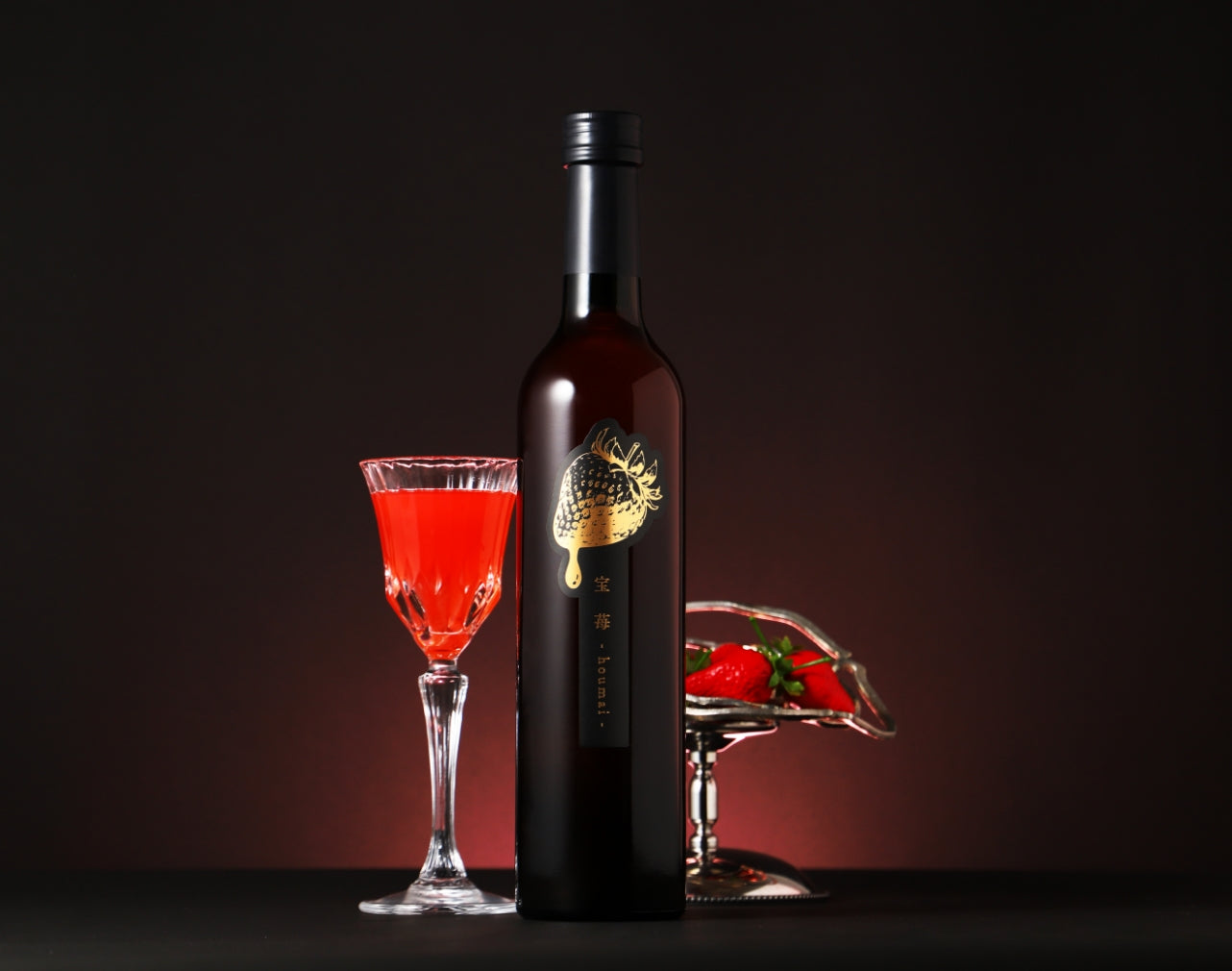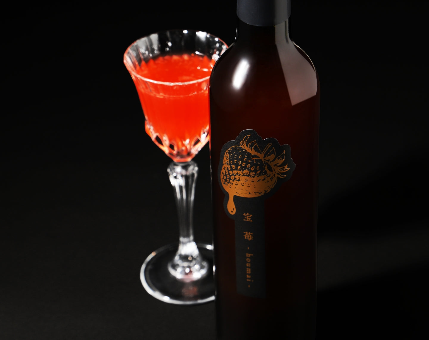 徳島県にある佐那河内村の限られた農家のみで栽培される希少ないちご「さくらももいちご」。甘く濃厚な香りに、穏やかな酸味。まるで桃のような香りとジューシーさを兼ね備えています。1株から8粒しか収穫できないよう栽培することで栄養素を集中させる技法を採用。希少性などからも1箱10万円ほどで取引されるまさに“幻の苺”。この苺を贅沢に使用した特別なリキュールが、「宝苺 -houmai-」です。