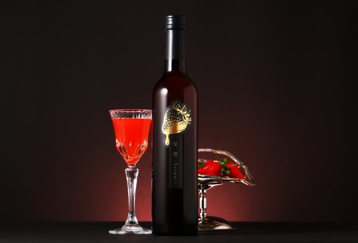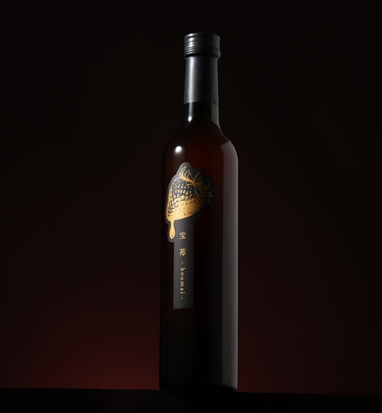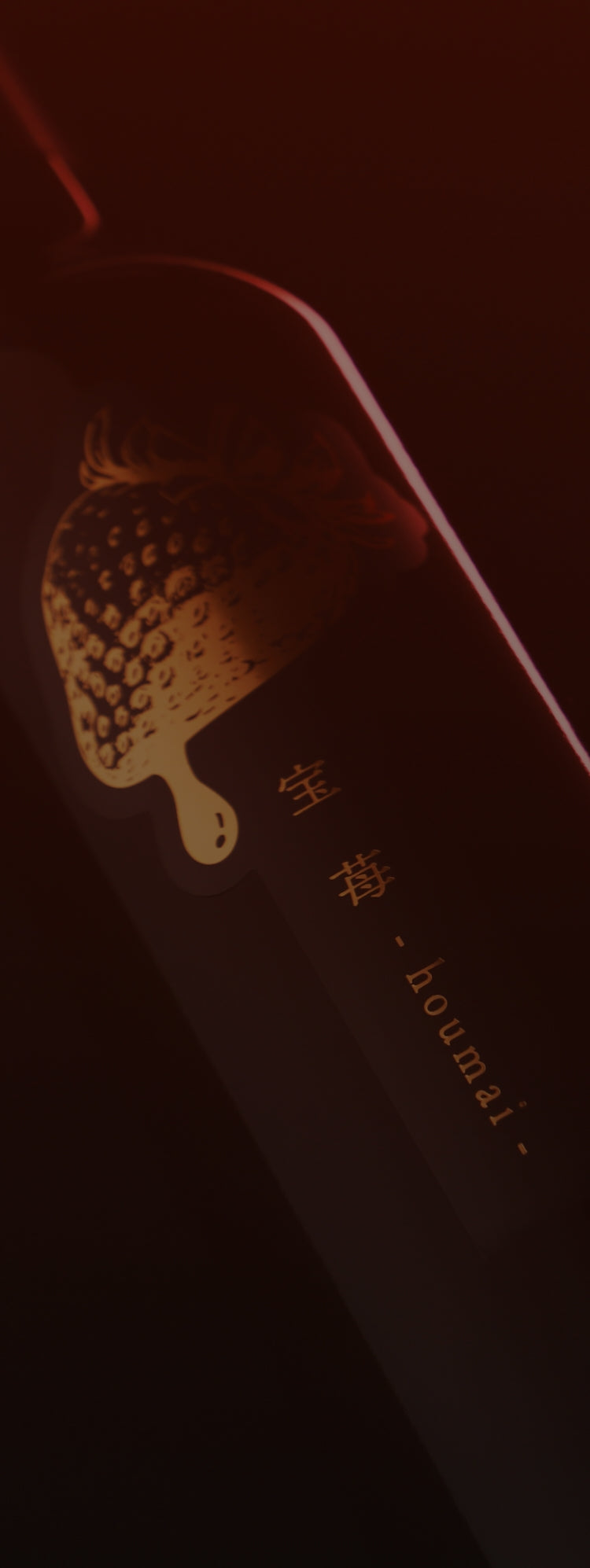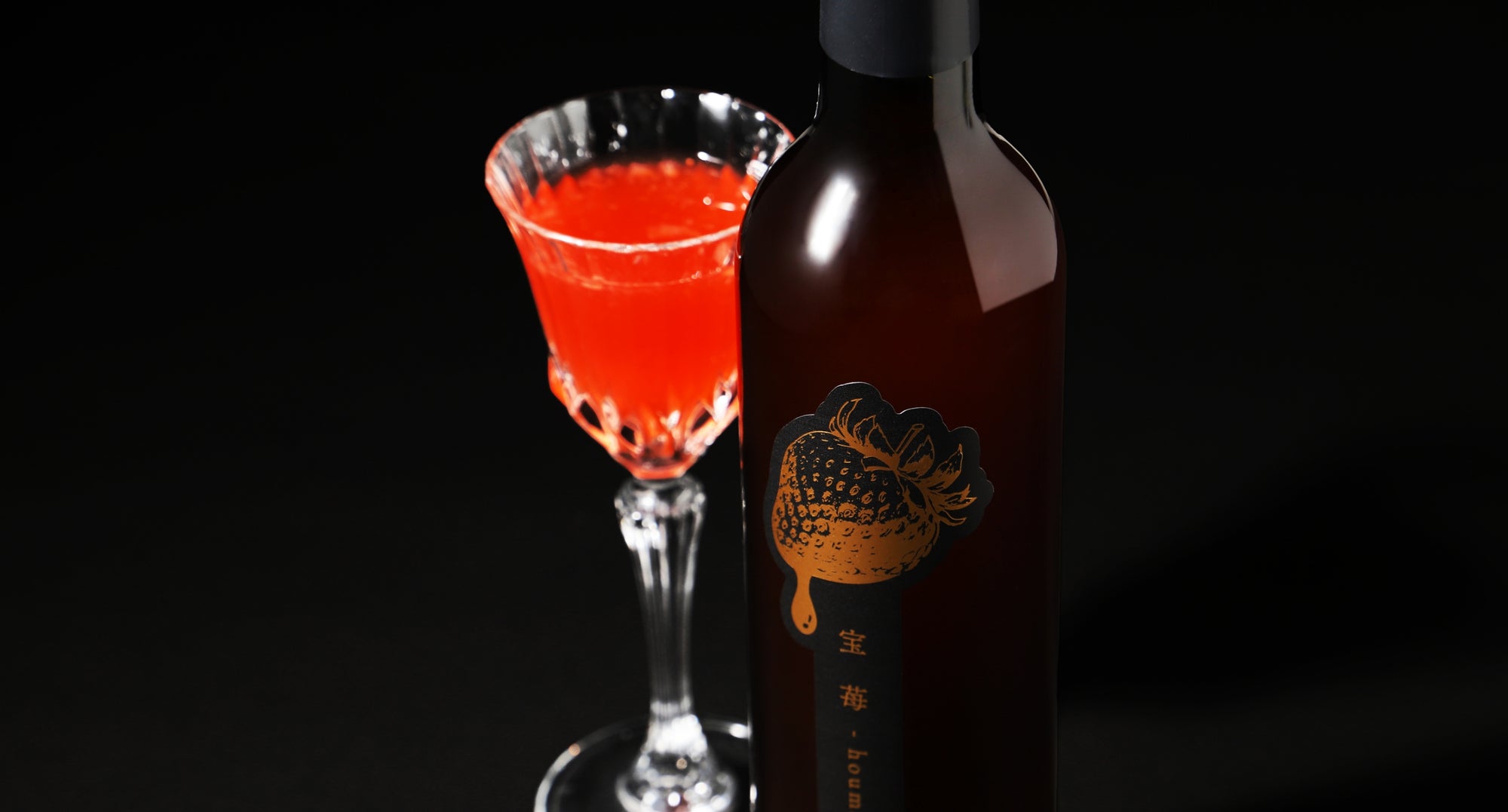 徳島県にある佐那河内村の限られた農家のみで栽培される希少ないちご「さくらももいちご」。甘く濃厚な香りに、穏やかな酸味。まるで桃のような香りとジューシーさを兼ね備えています。1株から8粒しか収穫できないよう栽培することで栄養素を集中させる技法を採用。希少性などからも1箱10万円ほどで取引されるまさに“幻の苺”。この苺を贅沢に使用した特別なリキュールが、「宝苺 -houmai-」です。