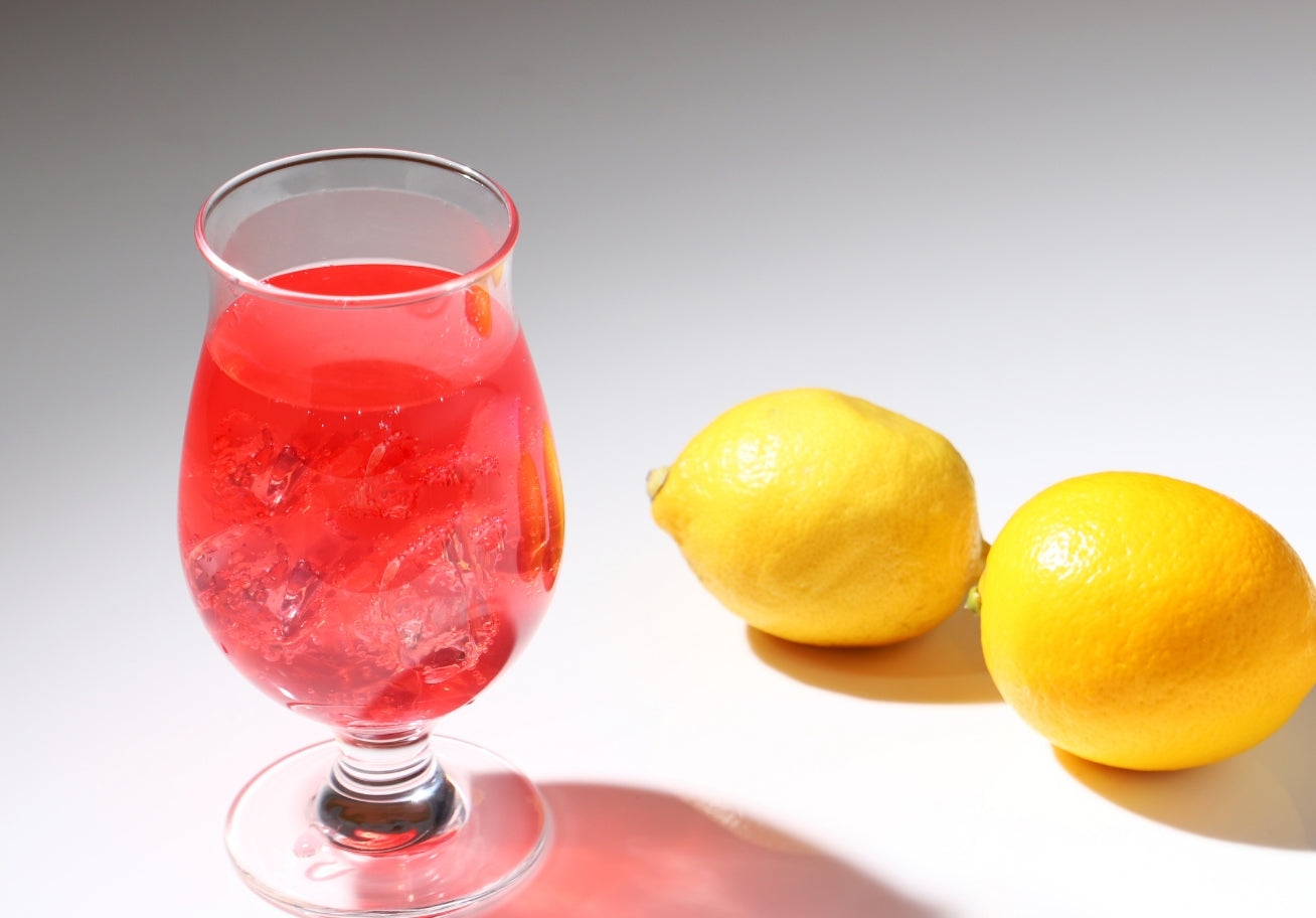 露茜がもたらす、目を奪われる紅色。そこに炭酸を注げば、鮮やかなピンクへと姿を変え、弾ける泡とともにレモンの香りがふわりと立ち上る。その美しさに誘われて口をつけた瞬間、広がるのは想像を超えるレモンの爽やかさと目の覚めるような酸味。そして隠し味のブランデーによる深み。炭酸水で3倍に割ることで、甘み・酸味・ほろ苦さが最も美しいバランスへと昇華されて——。一度この味を知ったら、深みにはまってしまう。