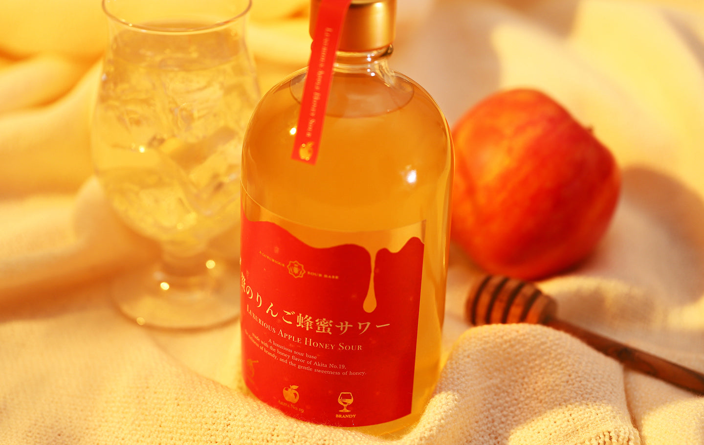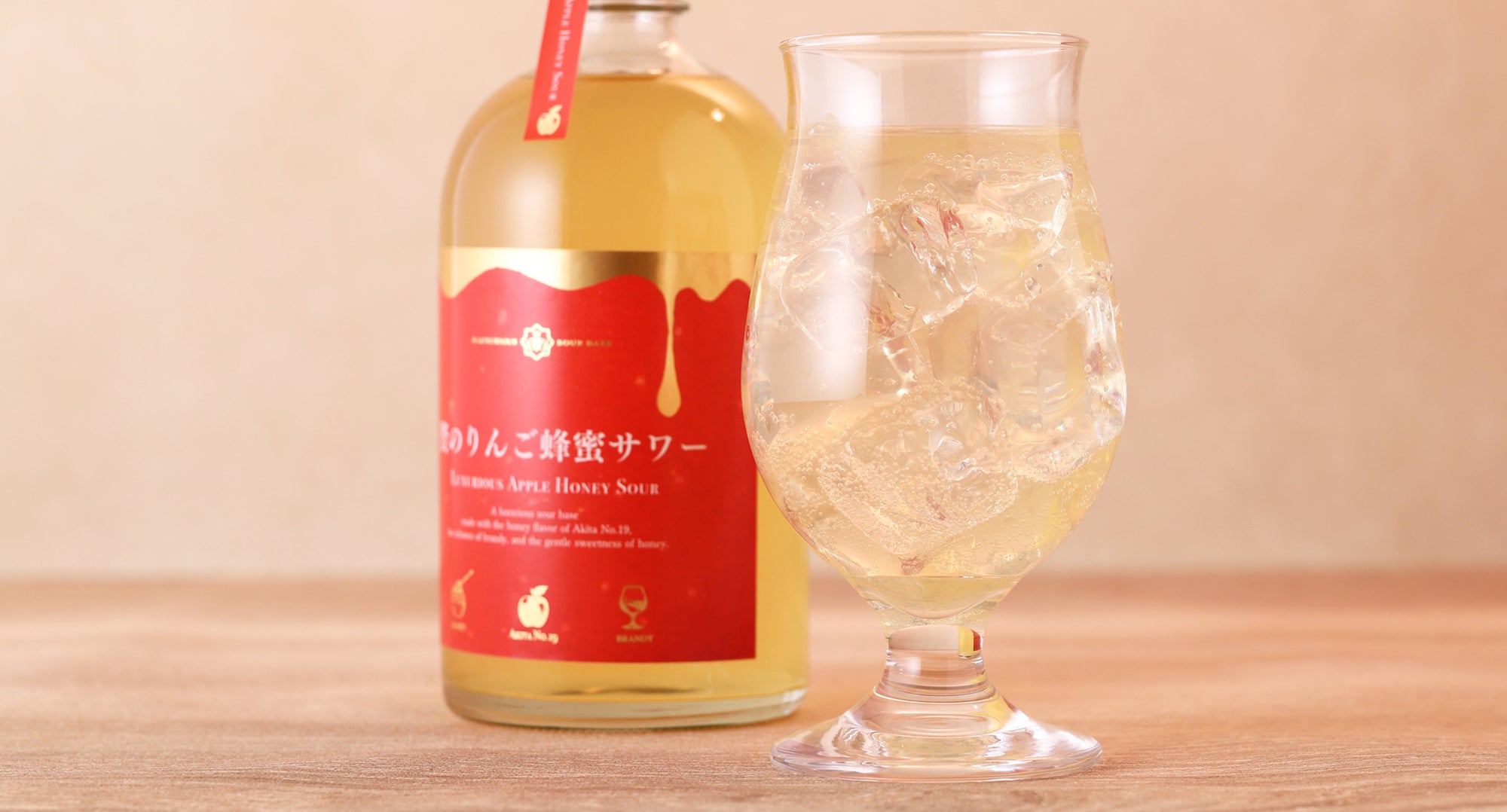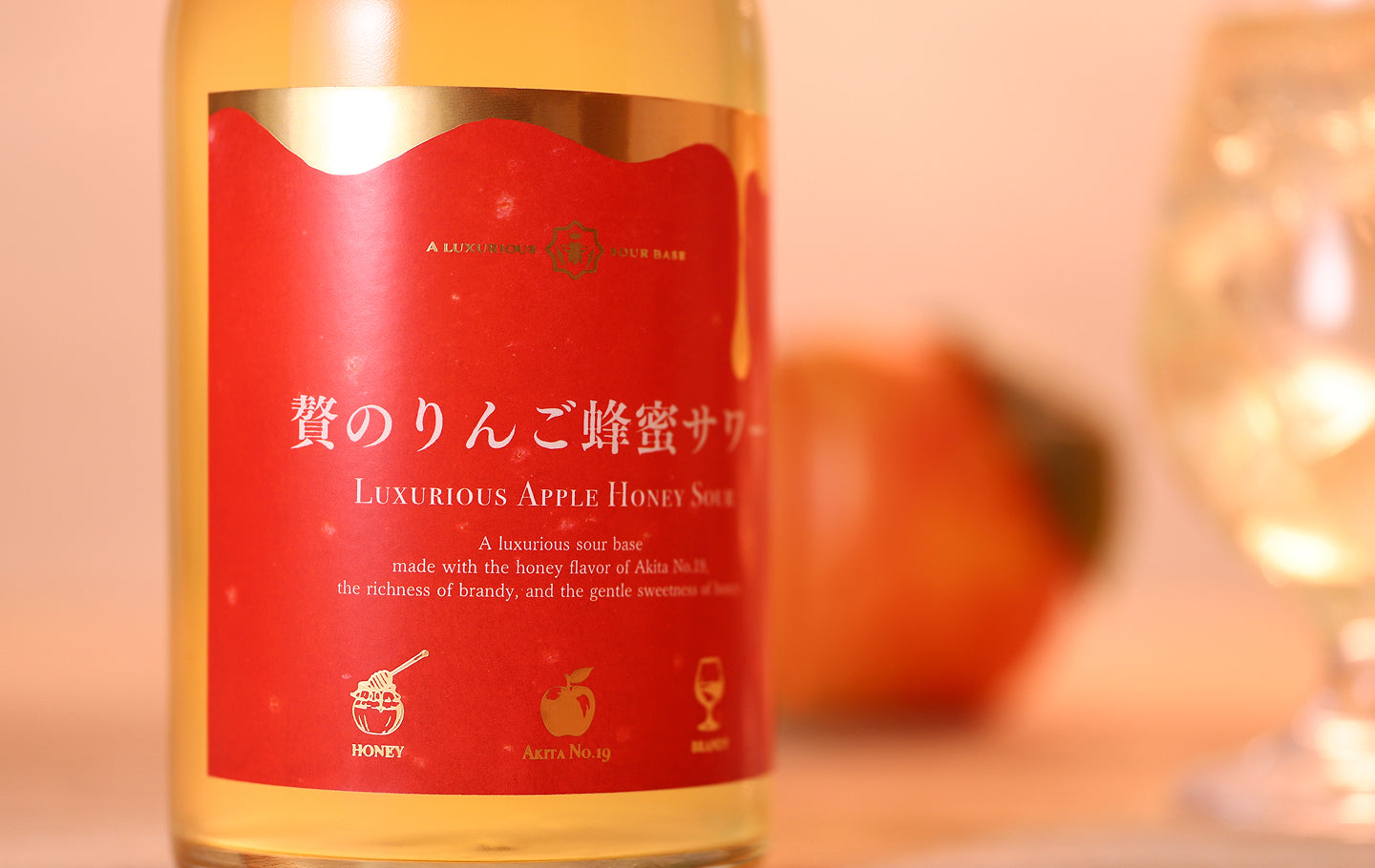 りんごサワーの「贅沢感」は、三層の設計から生まれます。秋田県産りんごの果汁を主体に、まろやかな蜂蜜の甘さを重ね、さらに「りんご浸漬ブランデー」で奥行きをプラス。りんごをまるごと漬け込み、香味を抽出したブランデーは、果汁だけでは出せない芳醇さと深みを引き出します。これらを丁寧にブレンドし、仕上げにろ過を施すことで、透明感のある味わいと繊細な余韻を実現しました。甘さ、香り、コクが響き合う、まさに贅を極めたサワーベースです。