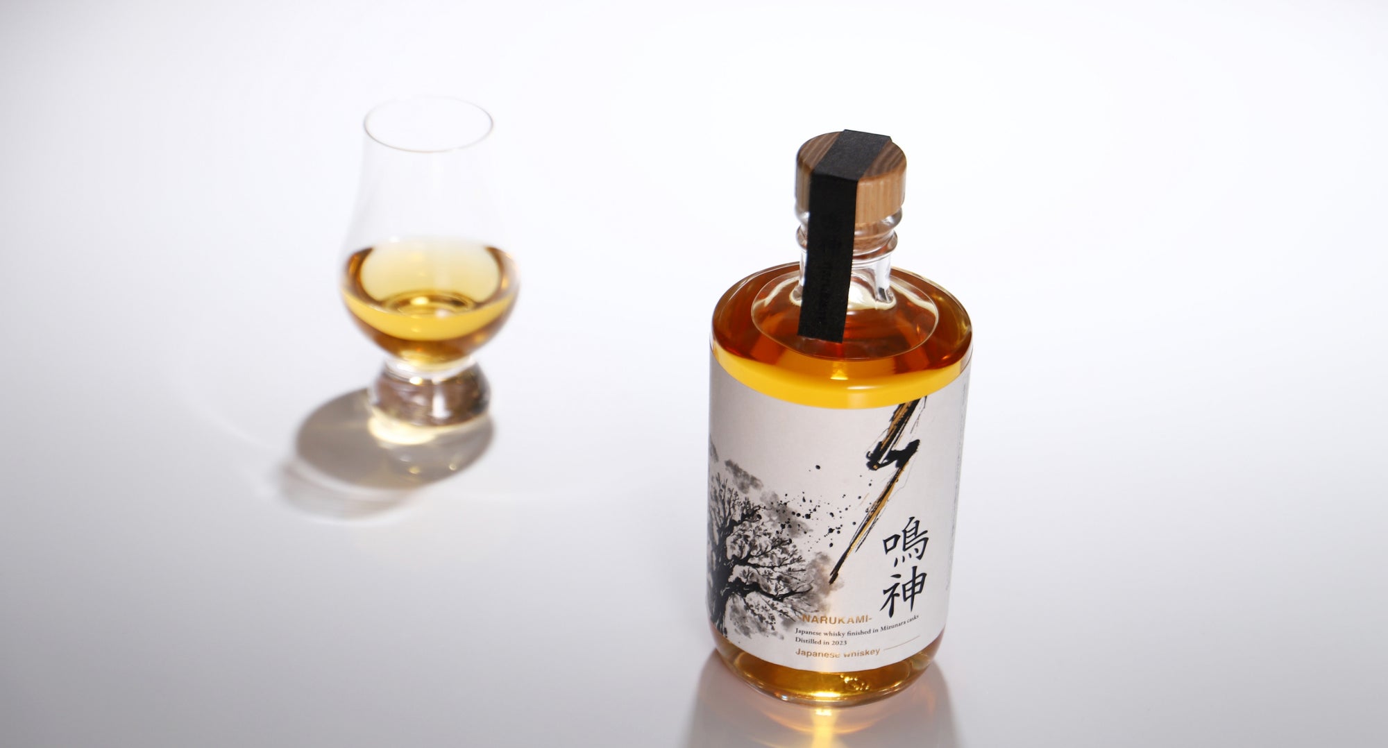 奈良県曽爾村にある「神息(かみき)酒造」。日本名水のひとつである曽爾高原の水があり、焼酎やビールなど数多くのお酒がつくられるこの地から、1本の神聖なるウイスキーが生まれました。 国産モルトを100%使用したシングルモルトウイスキー。まるで海のように壮大で山のように気高い、ジャパニーズウイスキーの真髄のようなその存在に「鳴神 -narukami-」の名を授けました。バーボン樽で2年、ミズナラ樽で1年、計3年の熟成を迎える2026年夏以降お届けします。