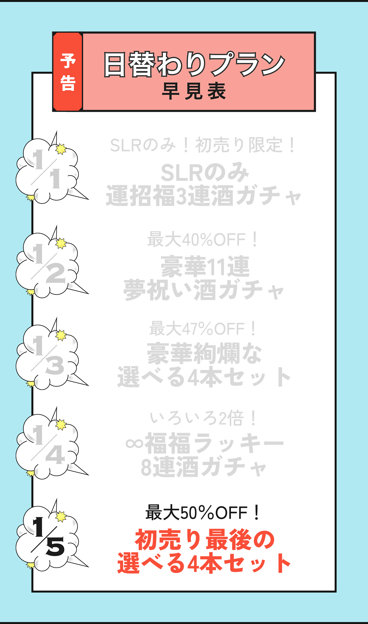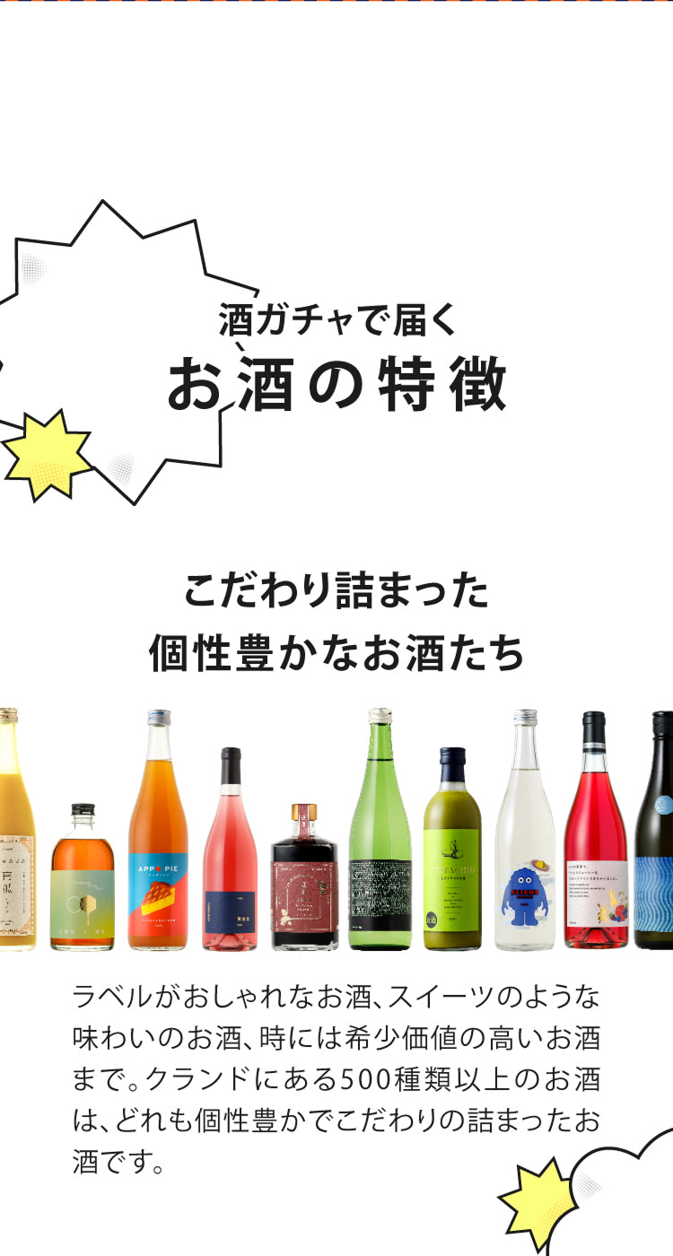 他の商品と一緒に購入できます。酒ガチャを2セット以上同時に購入することも可能です。一部同時の購入ができないプランや商品がございますのでご了承ください。