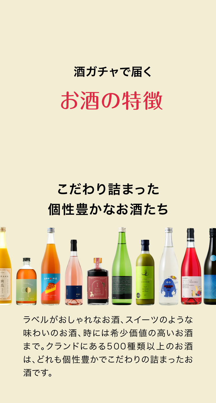 他の商品と一緒に購入できます。酒ガチャを2セット以上同時に購入することも可能です。一部同時の購入ができないプランや商品がございますのでご了承ください。