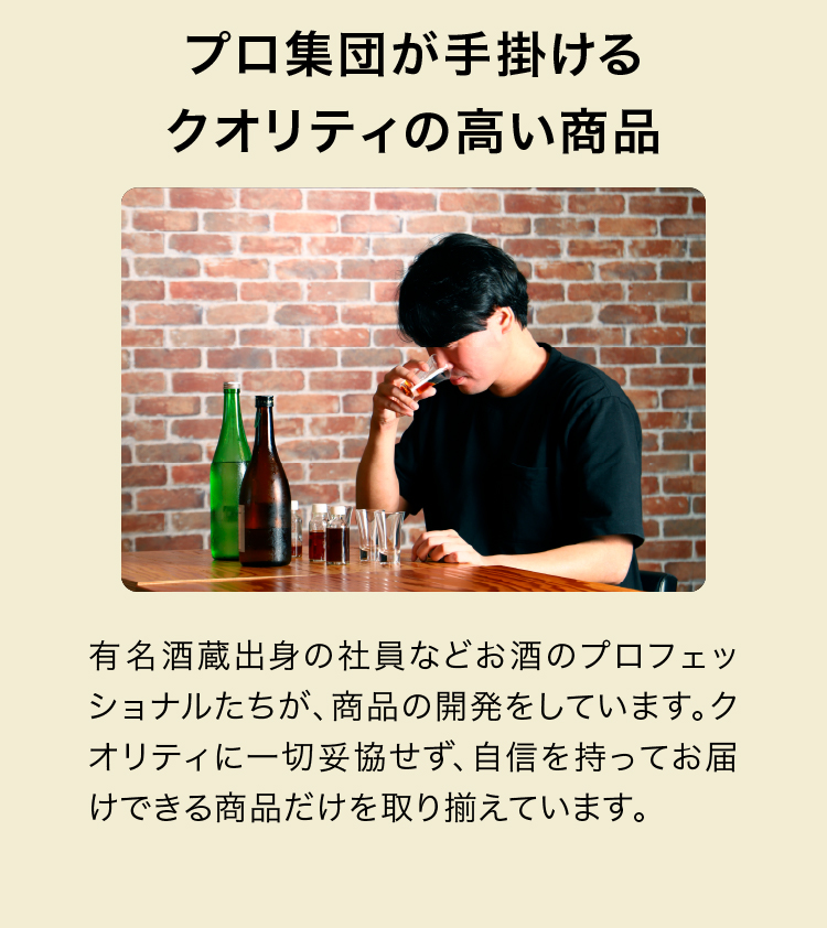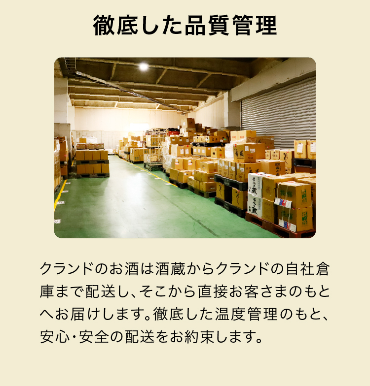 要冷蔵商品(スパークリング日本酒、生酒、クラフトビール、裏のラベルに「要冷蔵」の記載がある商品)は、必ず冷蔵庫で保管をお願いします。それ以外の商品は、冷暗所での保管が可能です。※開封後のお酒は、風味の劣化防止のため冷蔵庫での保管をお願いいたします。