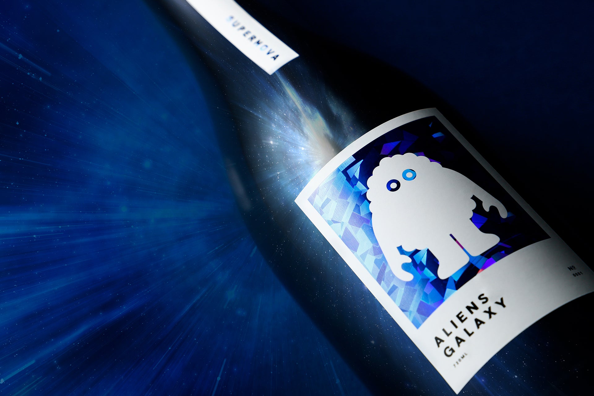 華やかな香りとすっきりとした甘口。そしてじっくりと丁寧に醸すことで生み出されるクリアな香りや繊細な味わいは、まるで静穏な宇宙に瞬く「GALAXY(銀河)」。「ALIENS GALAXY SUPERNOVA」は、そんなきらびやかな日本酒のしぼったばかりのごく僅かな部分だけを厳選し、瓶に詰めています。一瞬の輝きを閉じ込めた特別な1本に、爆発により一際明るく光を放つ恒星「SUPERNOVA(超新星)」の名を付けました。