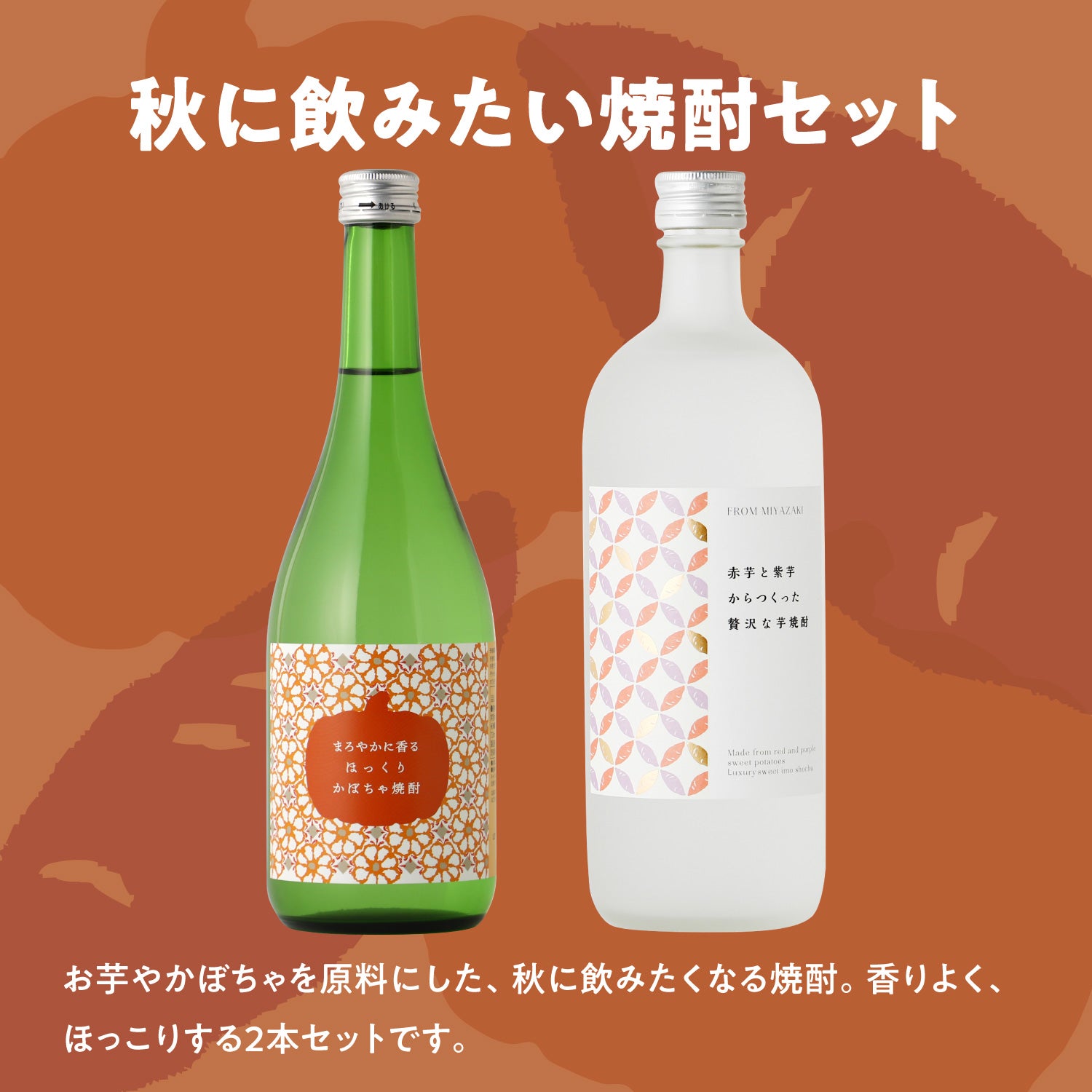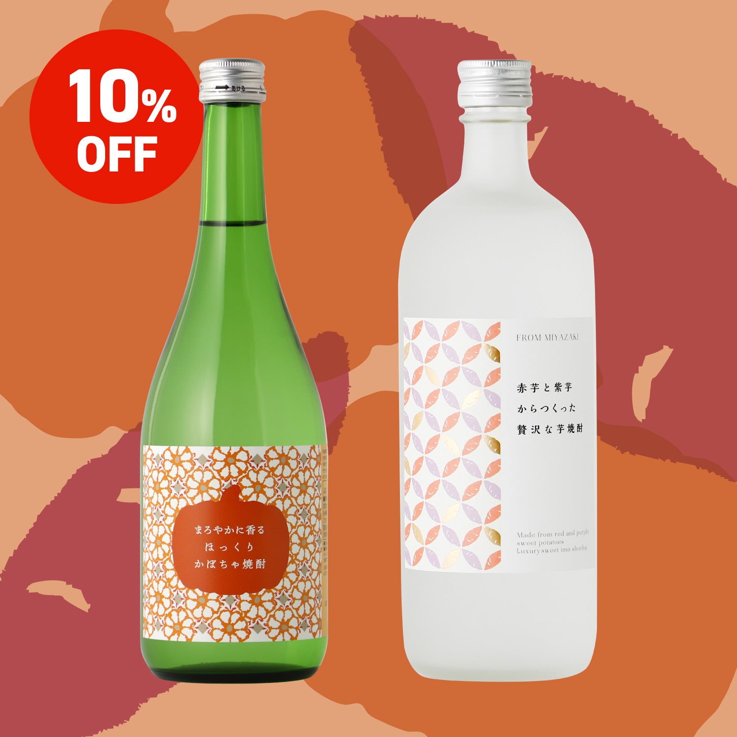 実りの秋。お芋やかぼちゃを原料にした、どこか秋に飲みたくなる焼酎2本を、10%OFFで購入できるお得なセットにしました。