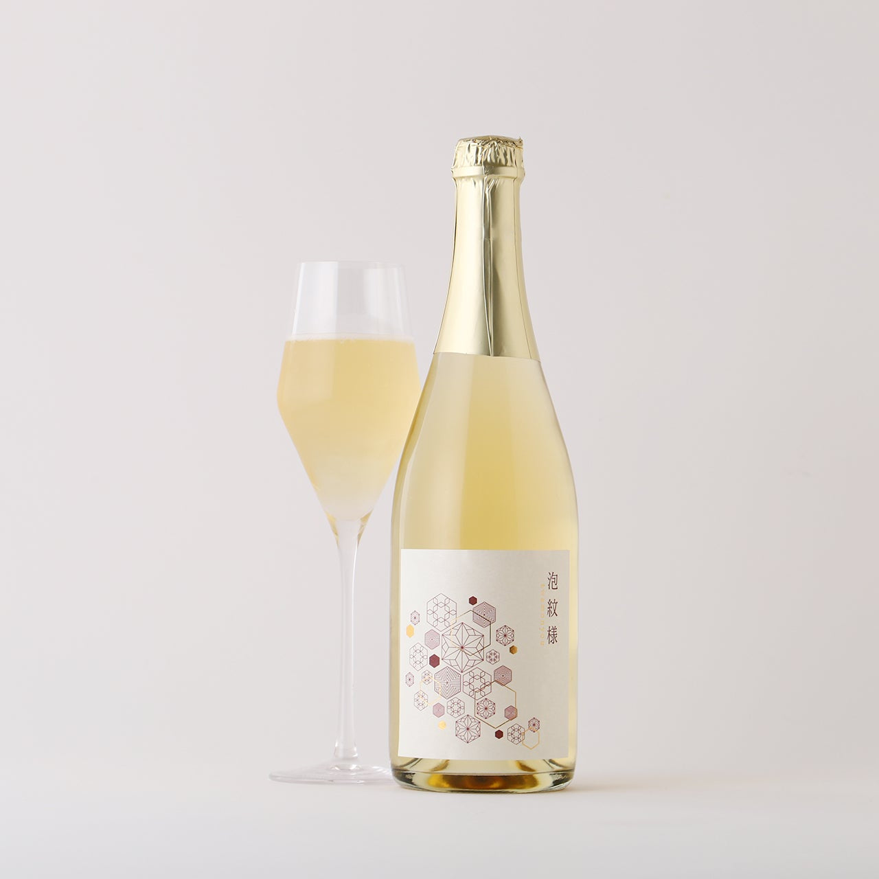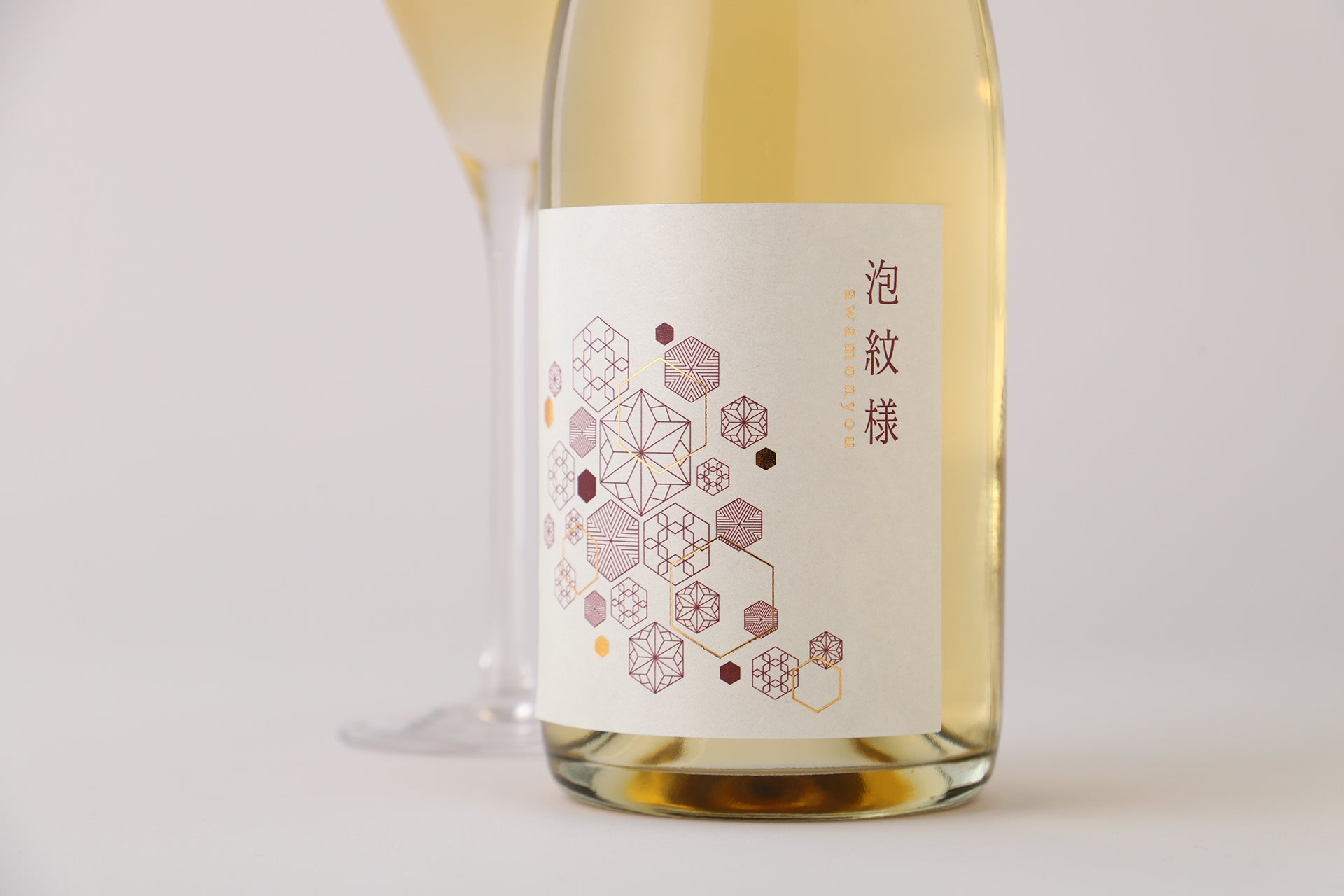 「泡紋様(あわもんよう)」は、お祝いの席にぴったりなスパークリングワイン。軽やかに舞い上がる泡をイメージしたデザインに祝福の想いを重ね、晴れの日に寄り添うワインに仕上げました。