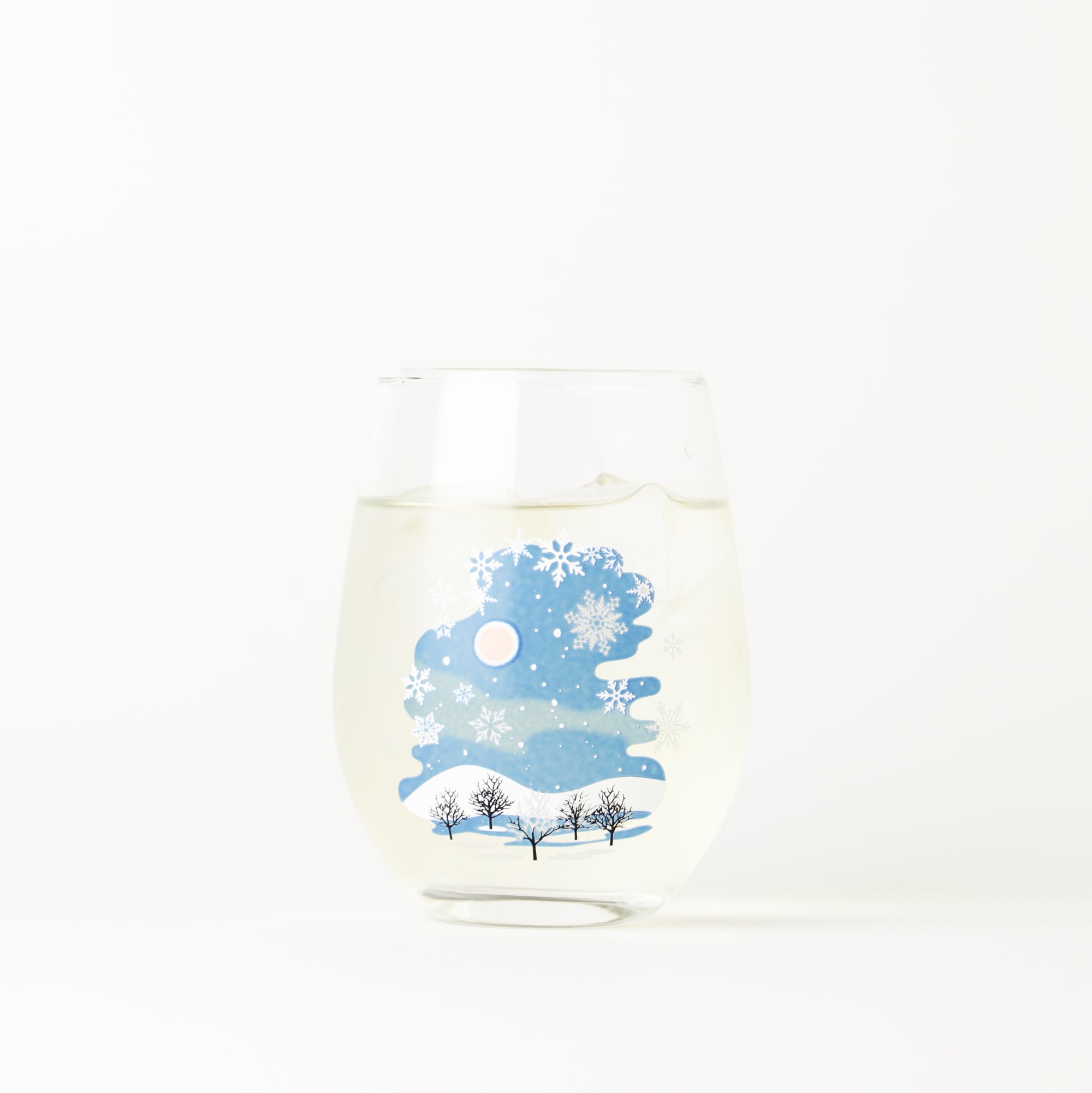 グラスが17℃以下になると絵柄が変化。冷たい飲み物を注ぐと、壮麗な雪景色が浮かびます。