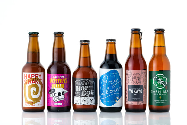 KURANDが厳選したのは、熟したライチのような華やかな香りと力強い味わい「柏ヤングマン」、華やかなアロマが口いっぱいに広がる「YOKAYO」、古代米で引き出す琥珀色が美しい「INISHIALE」、爽やかだけどガツン!と苦い「HAPPY SNAKE」、紫芋の甘い香りとフルーティーな香り「農家がつくる紫芋エール」、ほっこり和テイスト「SASHIMA」の計6種類。