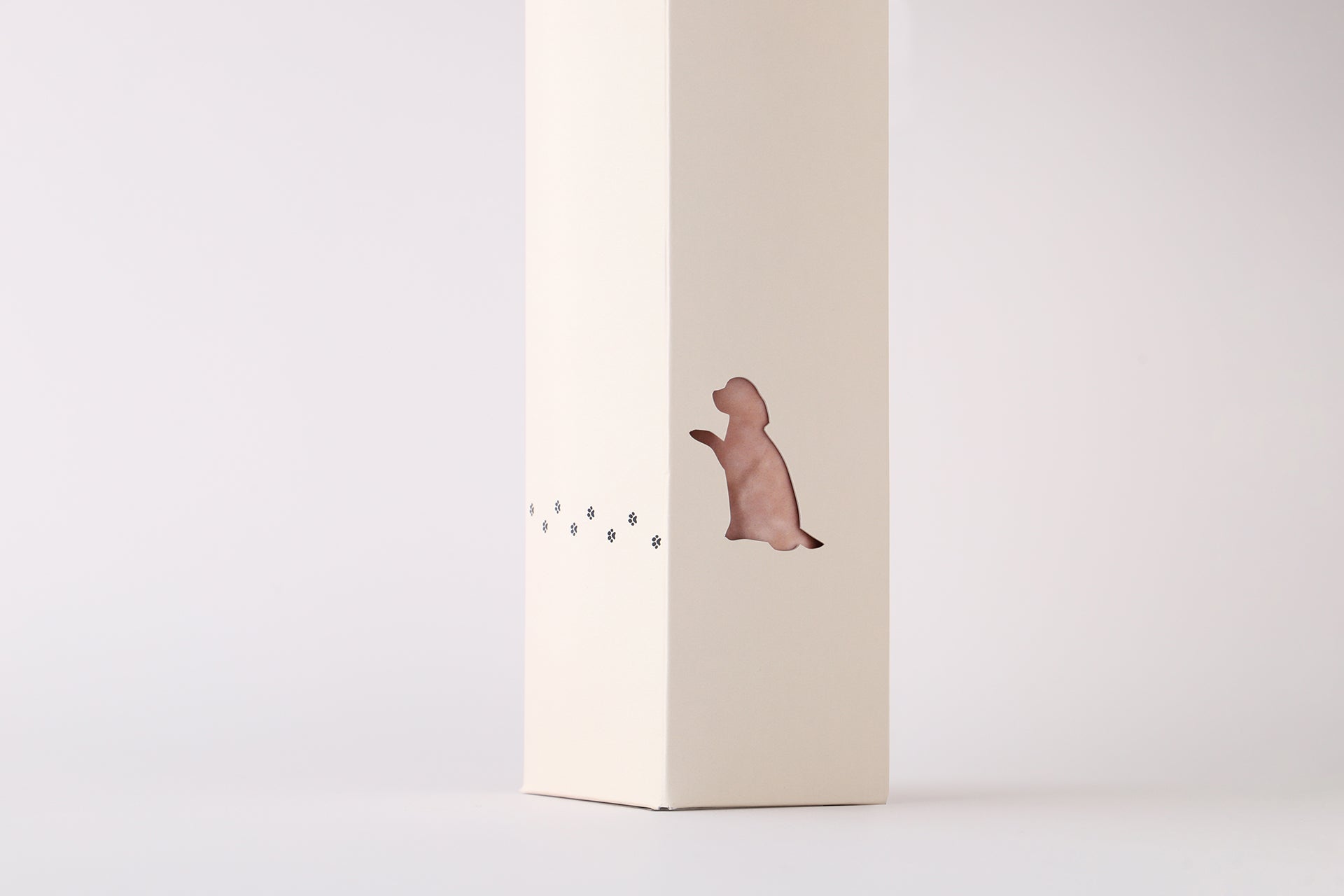 「いぬのさけ」シリーズは、オリジナルボックスに入れてお届けします。オリジナルボックスの側面には、2つのいぬのシルエット。ボトルを箱に入れた状態のままくるくると回すと、いぬのシルエットに中のボトルのプードルの色や毛並みが現れます。いぬ好きの心をくすぐるデザインで、贈り物にもぴったりな1本です。