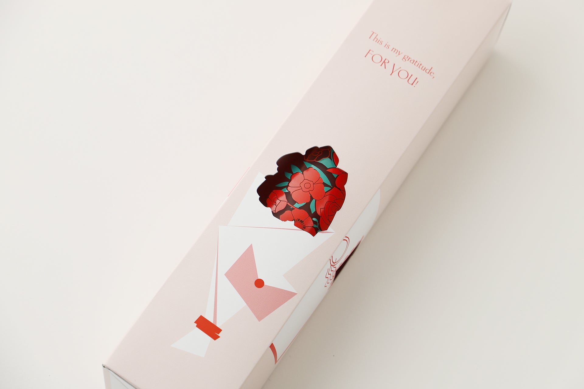 大切な人に感謝の気持ちを伝える、きれいな花々が描かれたお酒。専用のオリジナルボックスに入れれば、お酒は花束に様変わり。ピンク色のきれいなロゼワインが、心に残る時間をお届けします。