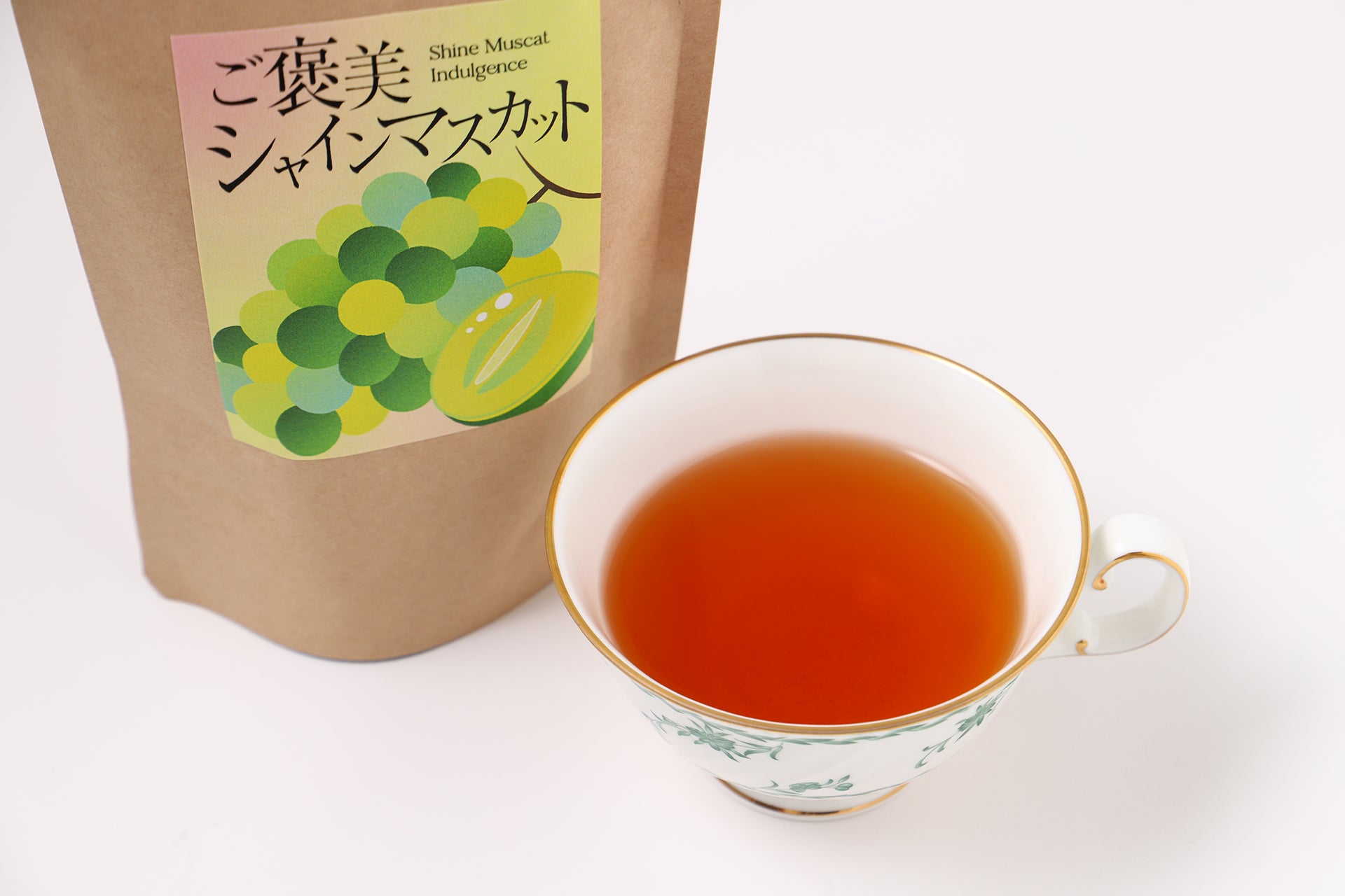 日本有数のお茶どころ、静岡県牧之原産の茶葉100%から生まれた、贅沢な和紅茶。丁寧に温度を管理しながら発酵させた和紅茶は、やわらかな渋みと芳醇なコクを持ちます。職人が茶葉の色や手触りを確かめながら複数の茶葉をブレンドし、そこへ高級果実シャインマスカットの風味をまとわせました。