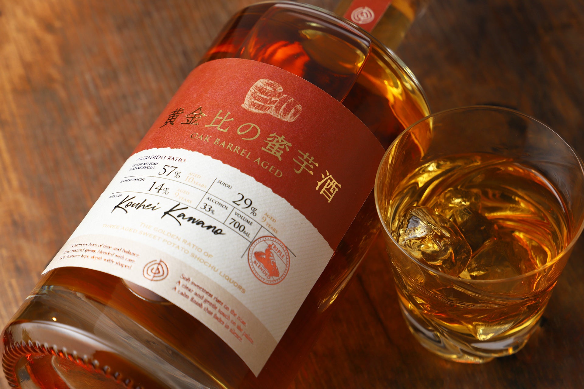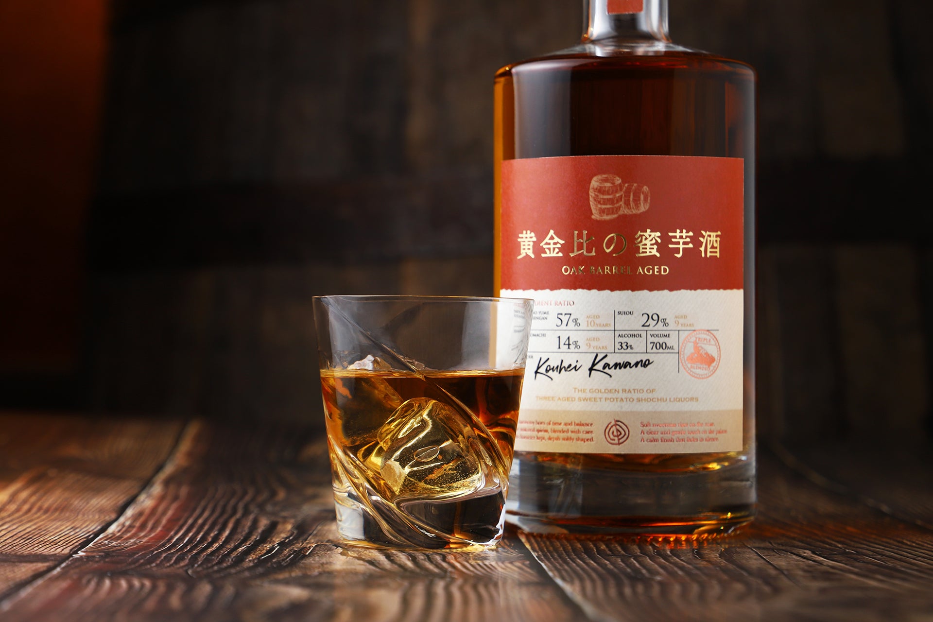 ドライフルーツのような芳醇な甘みと、樽由来のバニラ香が重なり合うオーク樽熟成の芋焼酎を黄金比のバランスでブレンドいたしました。滑らかな舌触りとともに、控えめな甘みと心地よい渋みが織りなすビターな余韻が楽しめます。