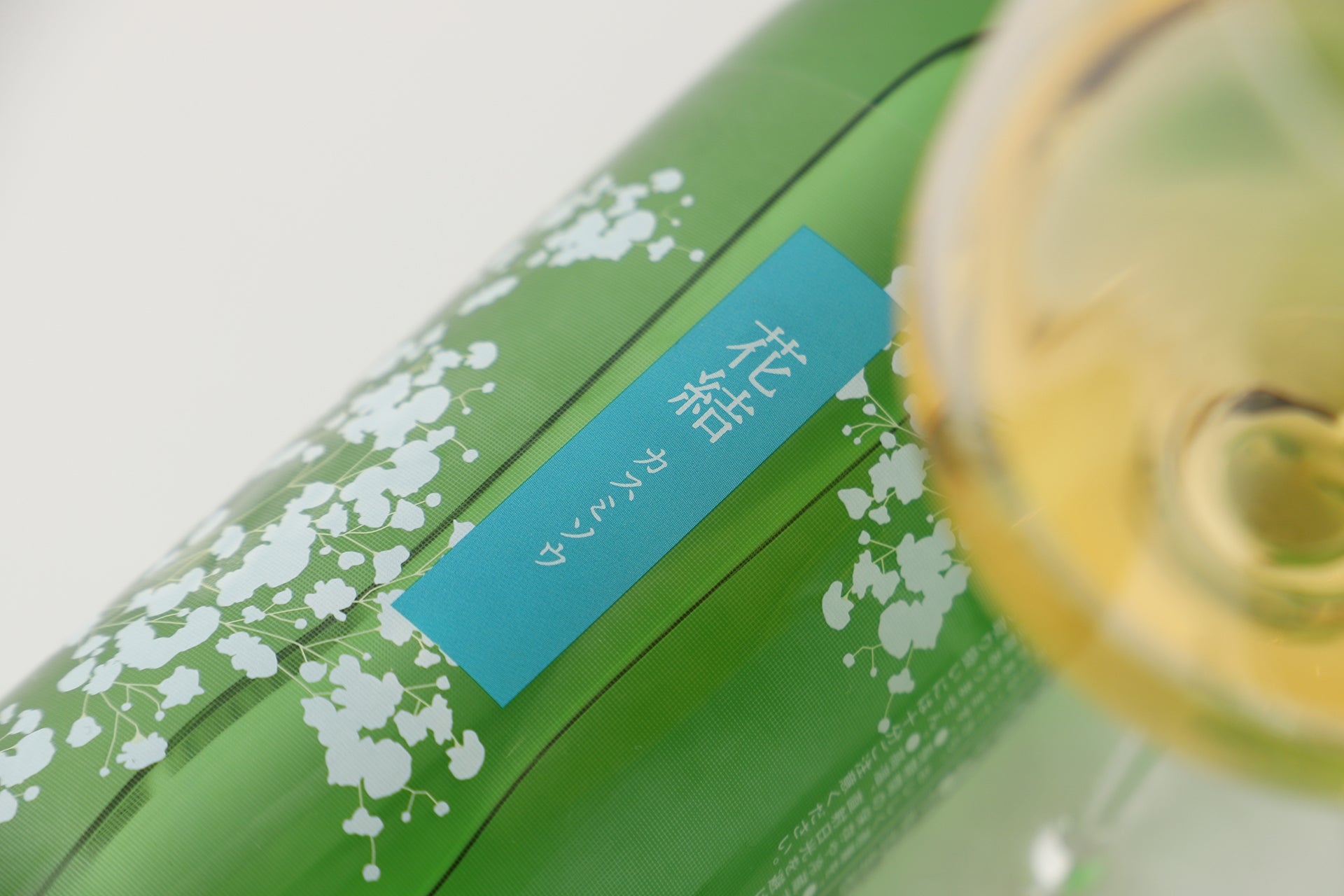 「花結-カスミソウ-」は、長野県塩尻市産の「ナイアガラ」を使用して造った、飲み心地のよい甘口の白ワインです。リンゴやマスカット、花の蜜を思わせるように華やかな香りとともに、柔らかな酸味とジューシーな甘みが広がります。