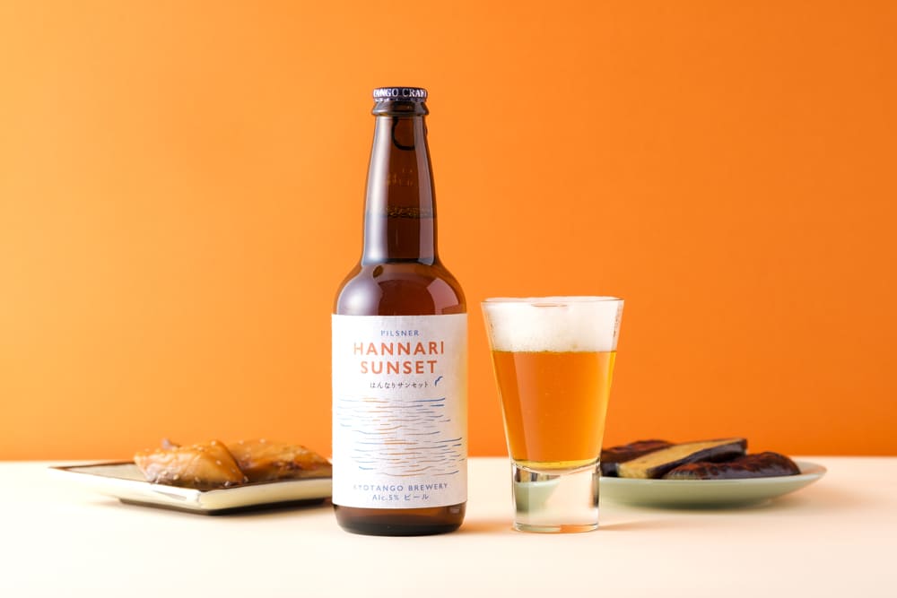 日本海に沈む美しい夕陽の情景をイメージした、乾杯にぴったりのクリアなビールです。副原料に丹後産のコシヒカリを使用し、まろやかで飲みやすいビールに仕上がりました。生きた酵母によるフレッシュな味わいをお楽しみください。