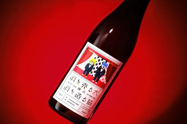 「酒を売る犬 酒を造る猫」は、「大切な友と呑み交わす酒」をコンセプトに誕生したブランド。「犬猫」という愛称で、多くの飲み手に愛されています。2匹のモデルは、宝山酒造の次期当主である渡邉さんと、営業の若松さん。毎年テーマを設け、求める味わいを目指して技術を磨いています。「神作」では、今の2人が理想とする味わいを実現。若き造り手の努力と成長が、飲み手に感動をもたらします。