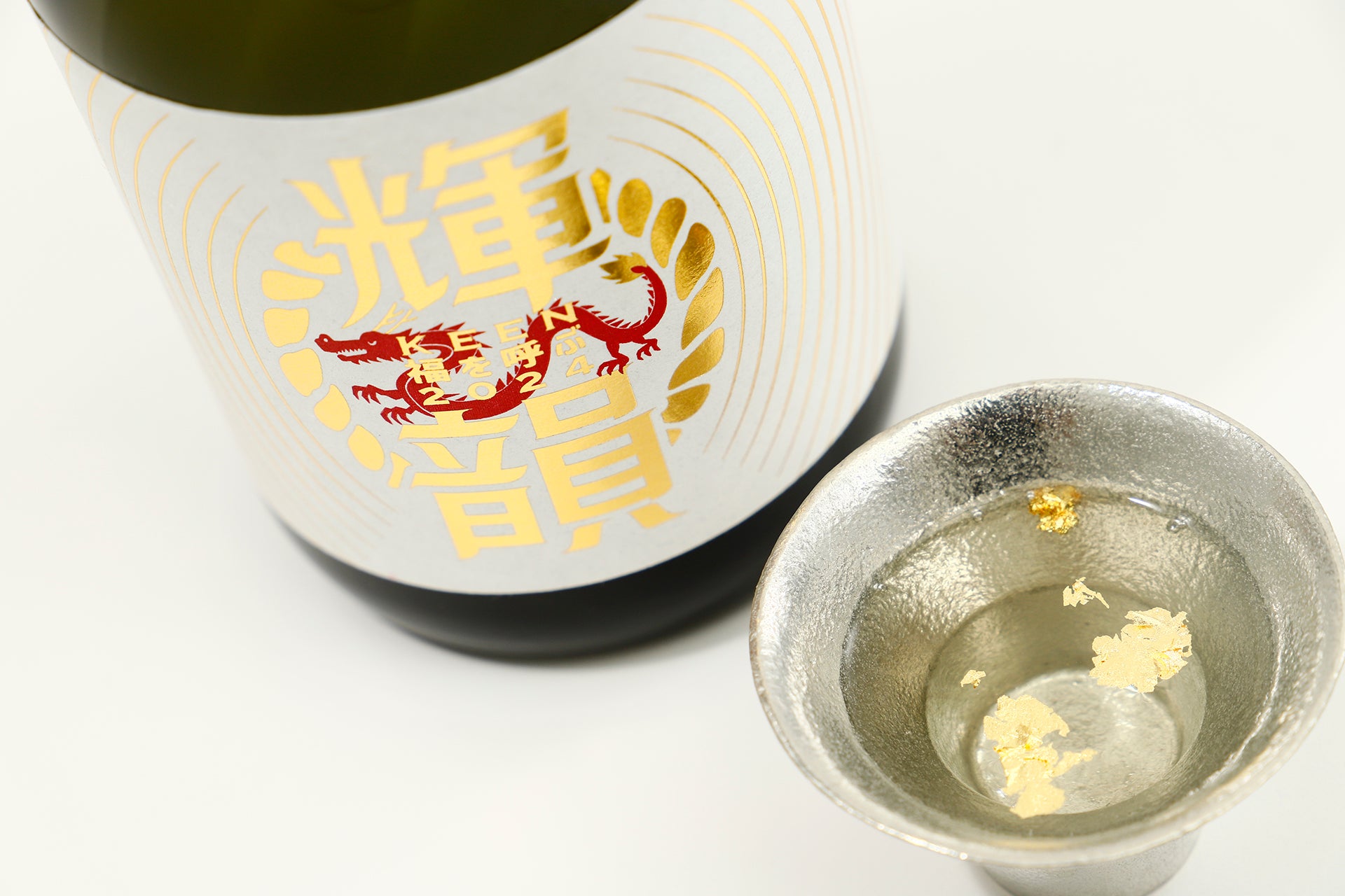 お酒を晴れやかに彩る金箔付き。2024年の干支にちなんで大きな辰が描かれた期間限定版ラベルです。
