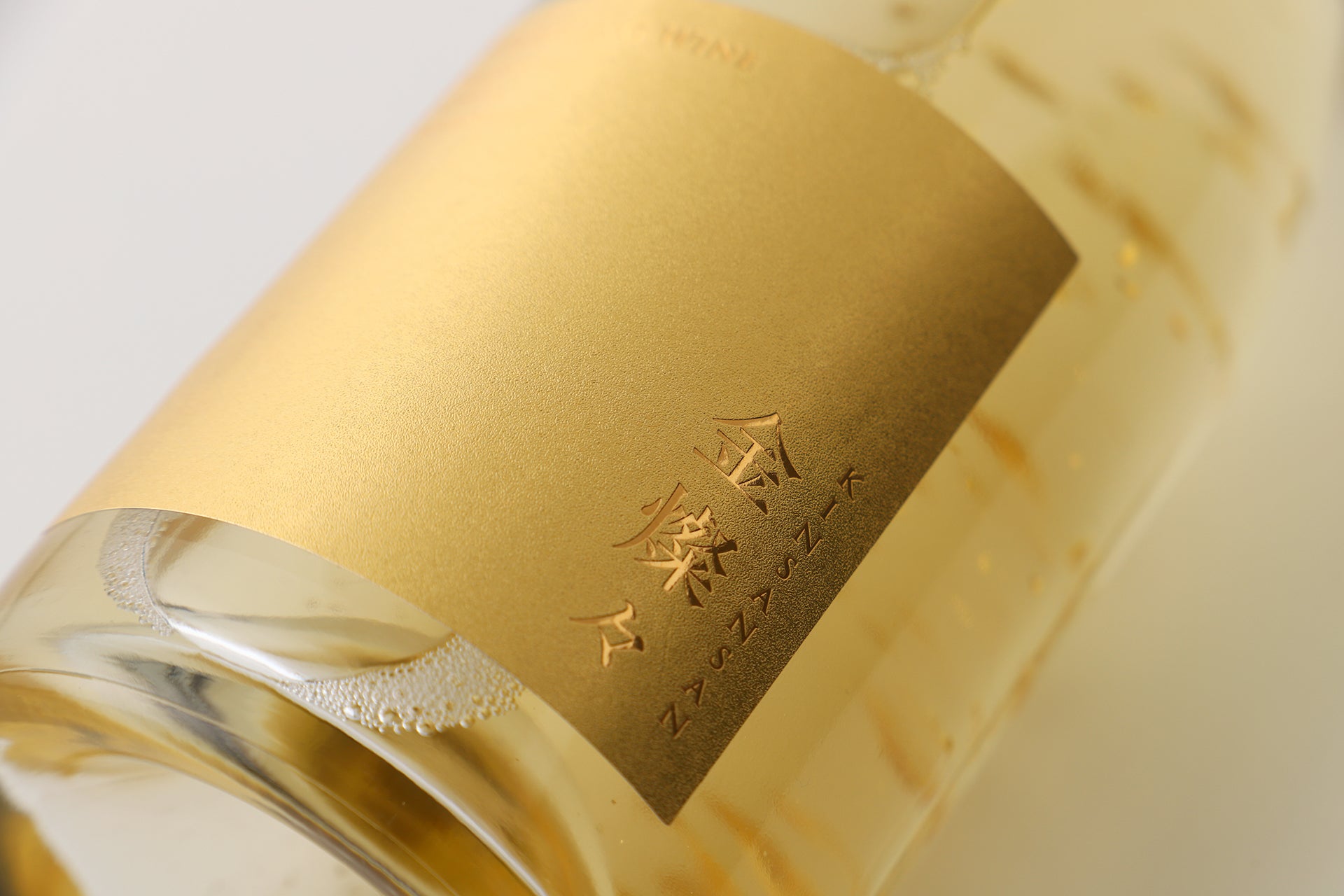 燦然と光り輝く金箔が舞うスパークリングの白ワインです。異なる山梨県産ぶどうで造った2種類の白ワインをブレンド。レモンやマスカットを思わせる香りとともに、キリッとした酸味と軽やかな泡が広がります。新しい年の幕開けにふさわしい、晴れやかな1本です。
