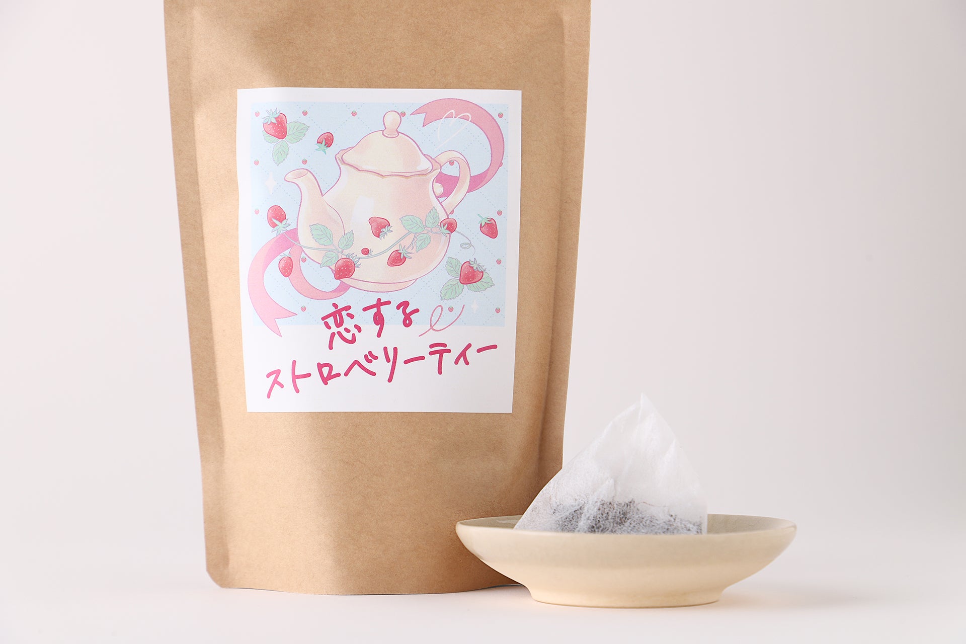 あの日の笑顔、ふいに触れた手。ティーパックにお湯を注ぐと、ふわりと訪れる苺の甘酸っぱい香りが閉じ込めた記憶をそっと解き放つ。国産茶葉にのせて届ける、恋する気持ちのストロベリーフレーバーティー。