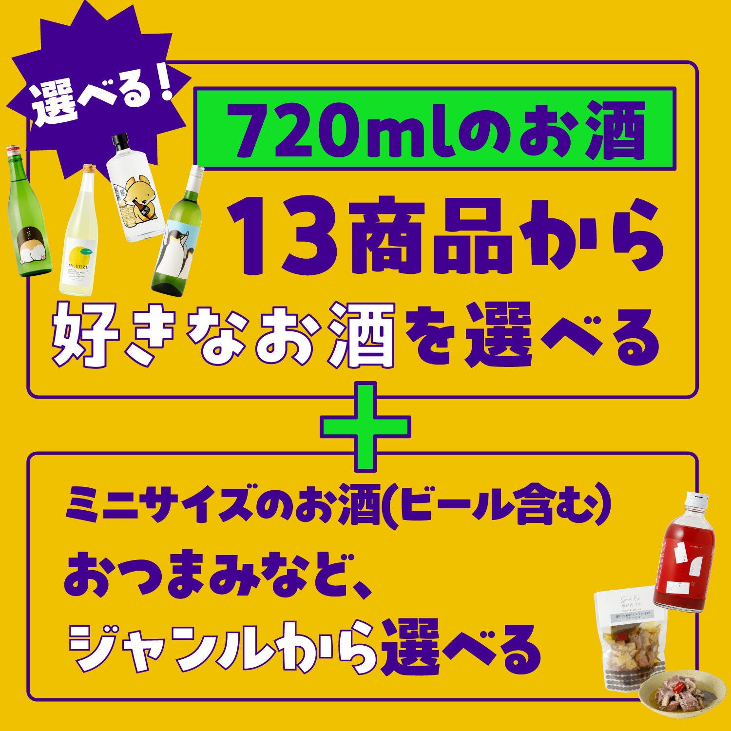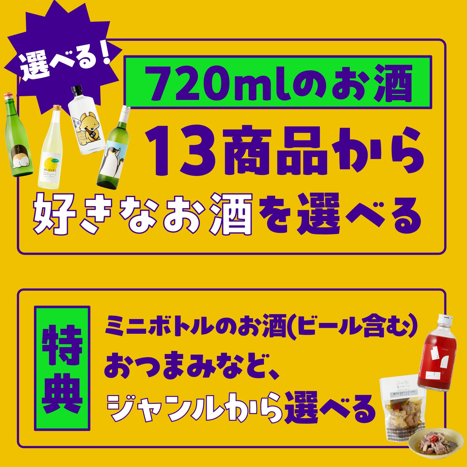 ①スタッフが厳選した13種類の人気商品から選べる720mlのお酒1本