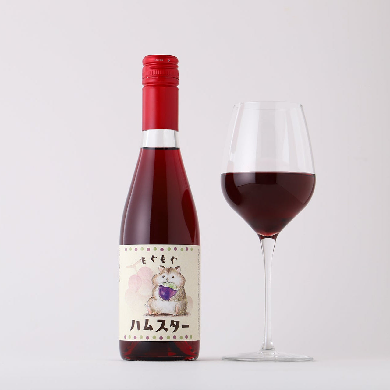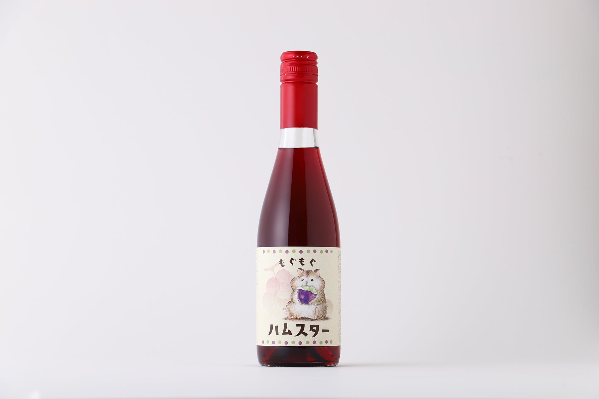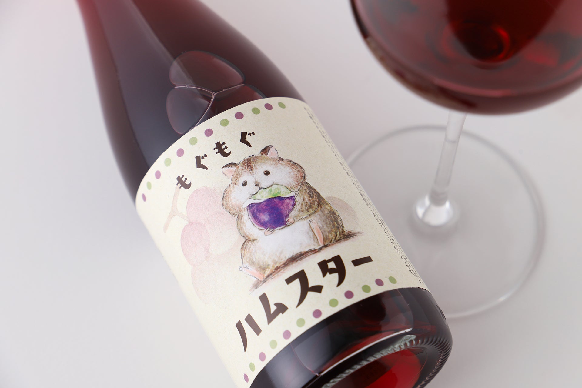 大好物のぶどうたちを頬袋にたっぷり詰め込んで。気づけばほっぺはパンパン、体もふくらんでまんまる。その姿を見ているだけで、思わず笑顔になっちゃう。そんな「しあわせの時間」をぎゅぎゅっとたっぷり詰め込んだ、やさしい甘さの赤ワインです。