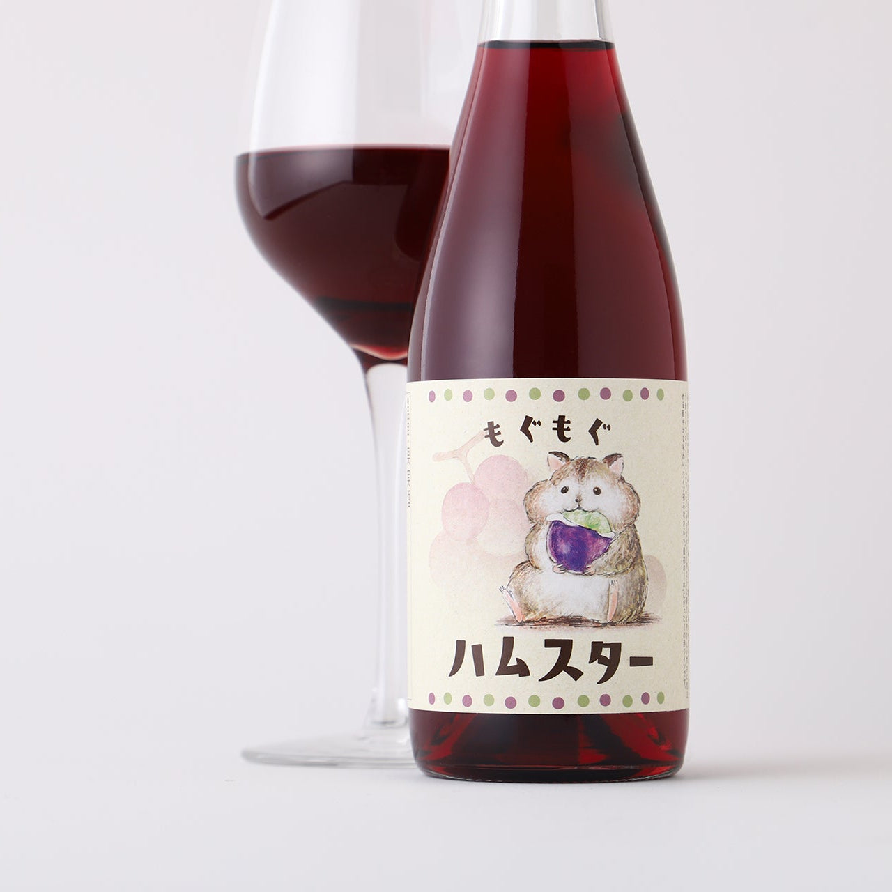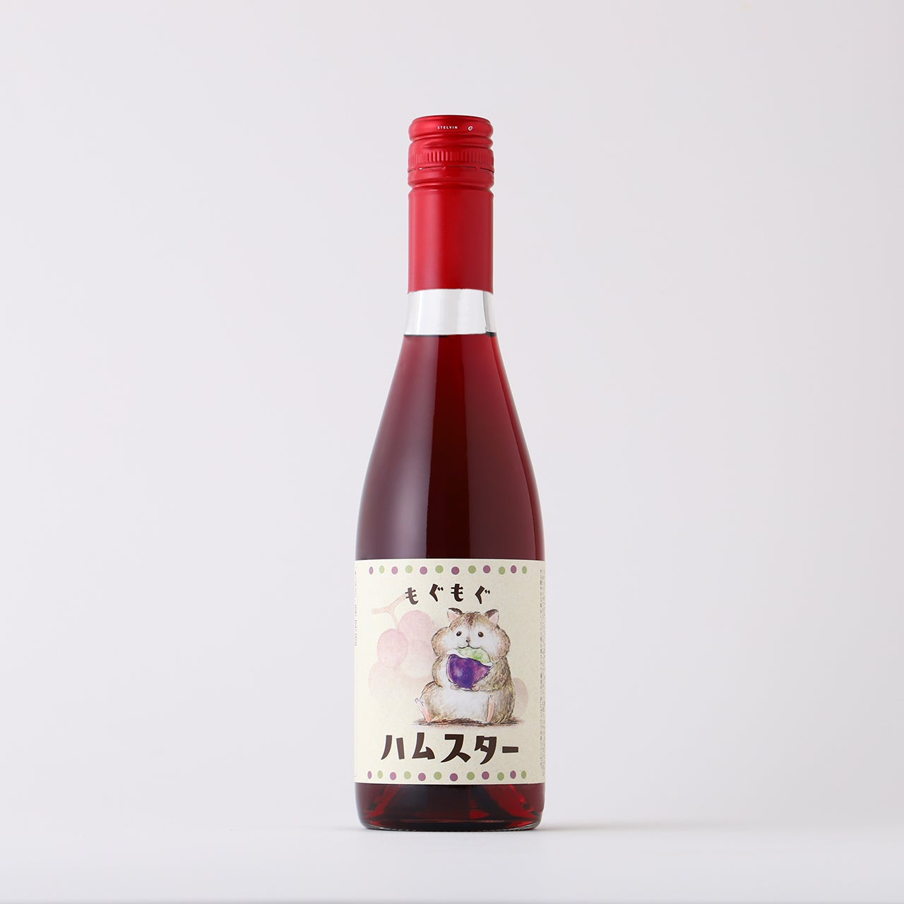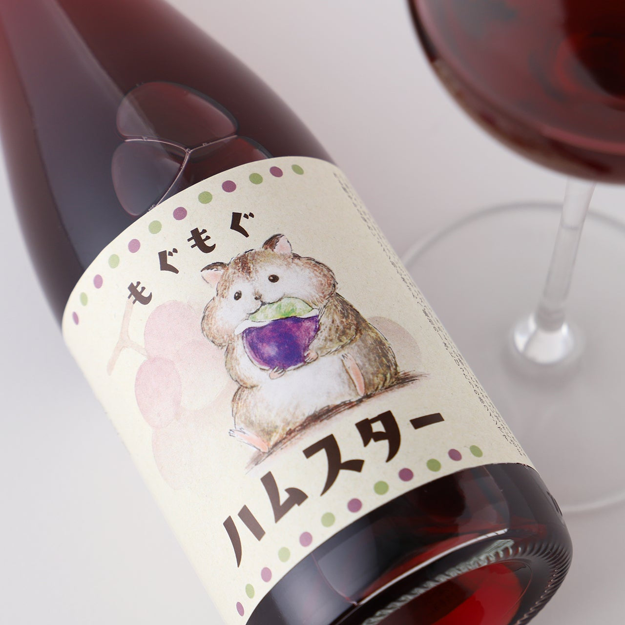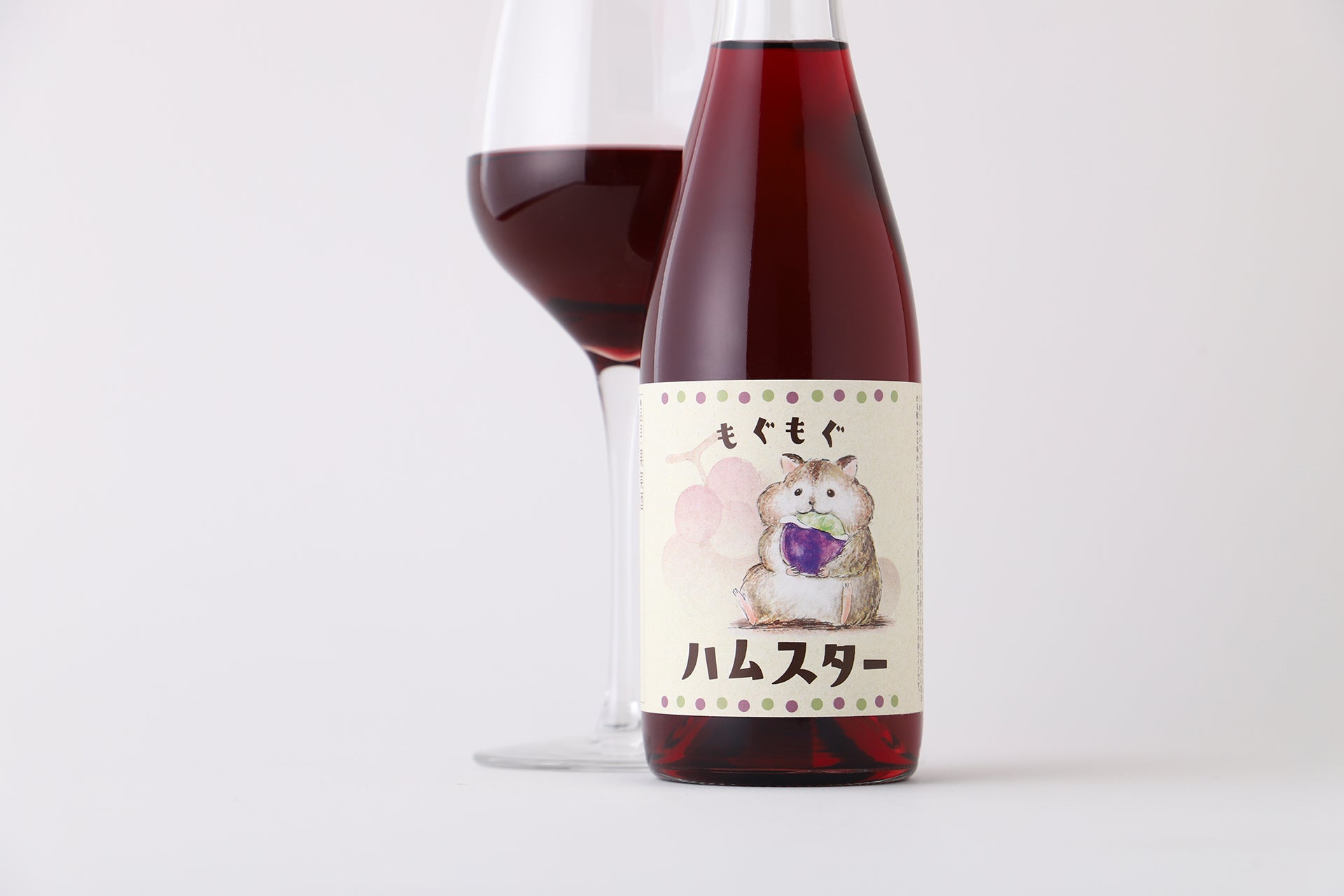 大好物のぶどうたちを頬袋にたっぷり詰め込んで。気づけばほっぺはパンパン、体もふくらんでまんまる。その姿を見ているだけで、思わず笑顔になっちゃう。そんな「しあわせの時間」をぎゅぎゅっとたっぷり詰め込んだ、やさしい甘さの赤ワインです。
