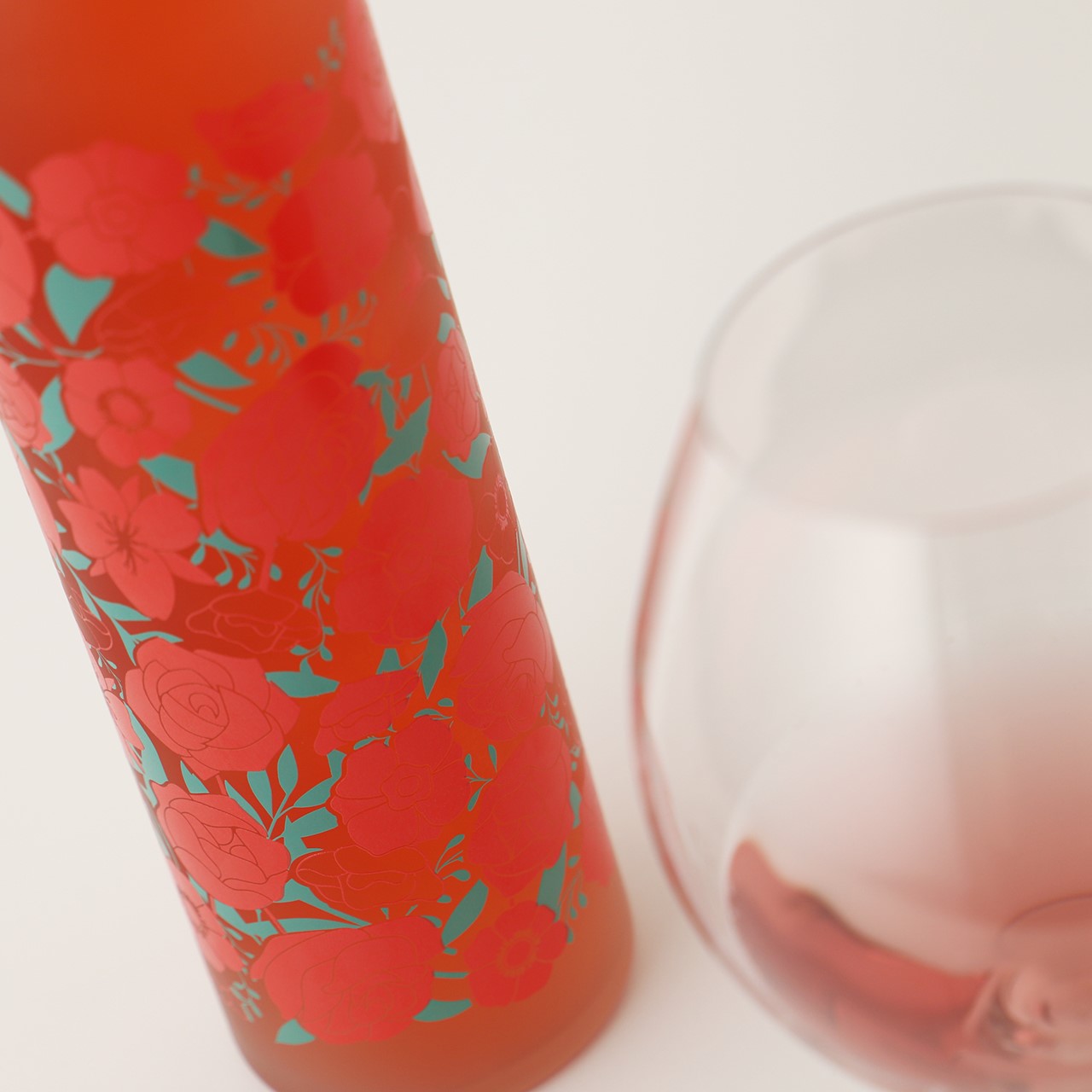 大切な人に感謝の気持ちを伝えるなら、きれいな花々が描かれた魅力的なお酒をプレゼントしてみませんか。専用のオリジナルボックスに入れれば、お酒は花束に様変わり。ピンク色のきれいなロゼワインが、心に残る時間をお届けします。