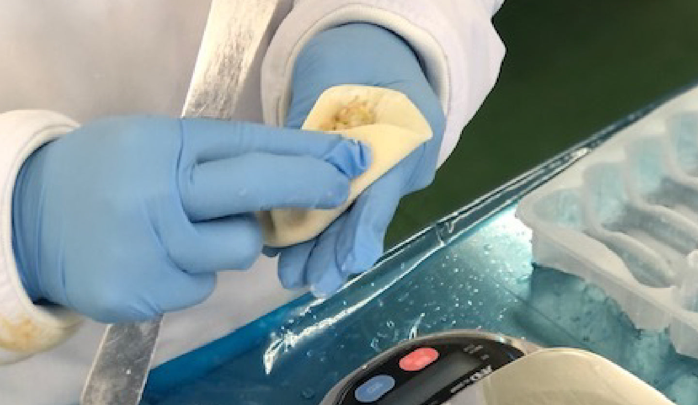 しかし、「高加水率の皮」は繊細で機械ではなかなか扱うことができません。そこで、今回1つひとつ丁寧に手作業で包みあげました。