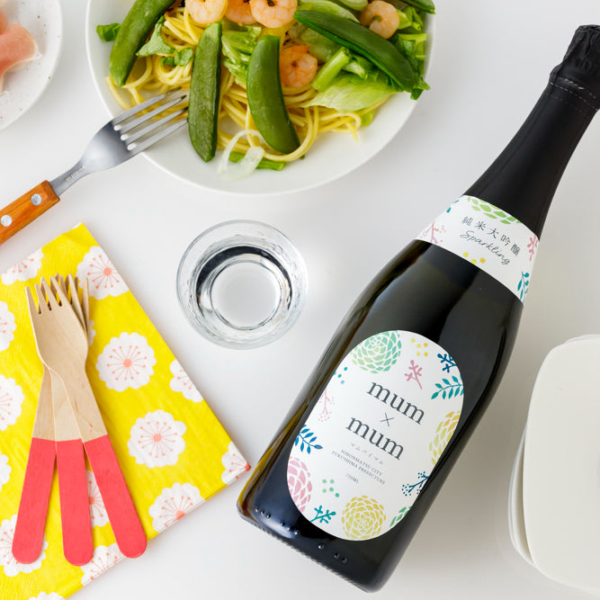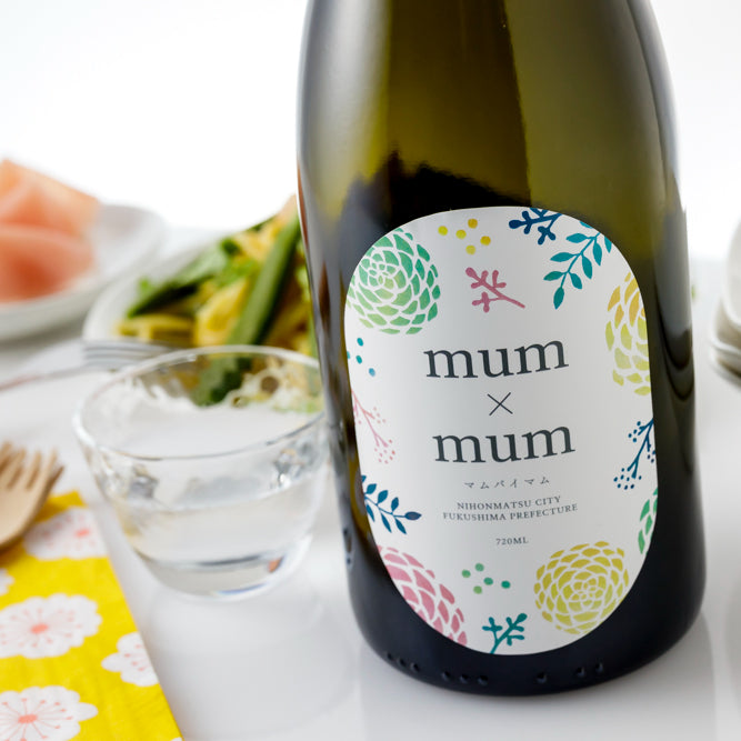 福島県二本松市のクリアな水と良質な酒米でつくられた、天然発泡のナチュラルな純米大吟醸のスパークリングです。 「菊のまち二本松」でつくった日本酒なので「mum×mum(マムバイマム)」と考えました。