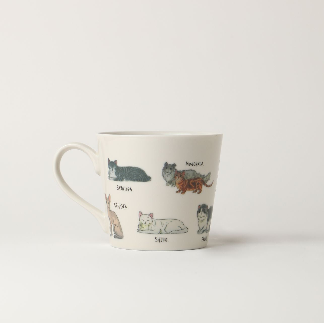 45℃以上の飲み物を注ぐと、黒い猫のシルエットがみる変化。 サビ猫など10種のかわいらしい猫たちの姿を現します。