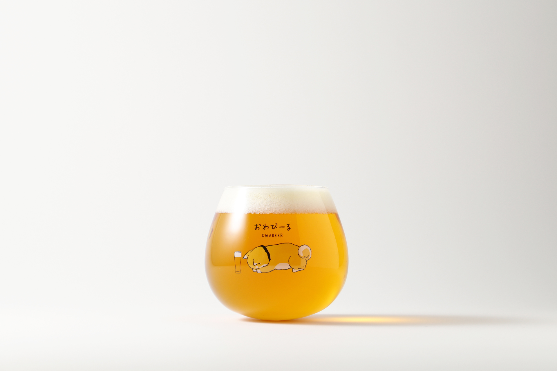 両手をついて謝っているかのような柴犬の姿を描いた、チャーミングなグラス。ビールを注ぐと、イラストに描かれたグラスにもビールが注がれます。しょんぼりと丸まりながら「どうぞ」と1杯差し出されたら、飲まずにはいられません。