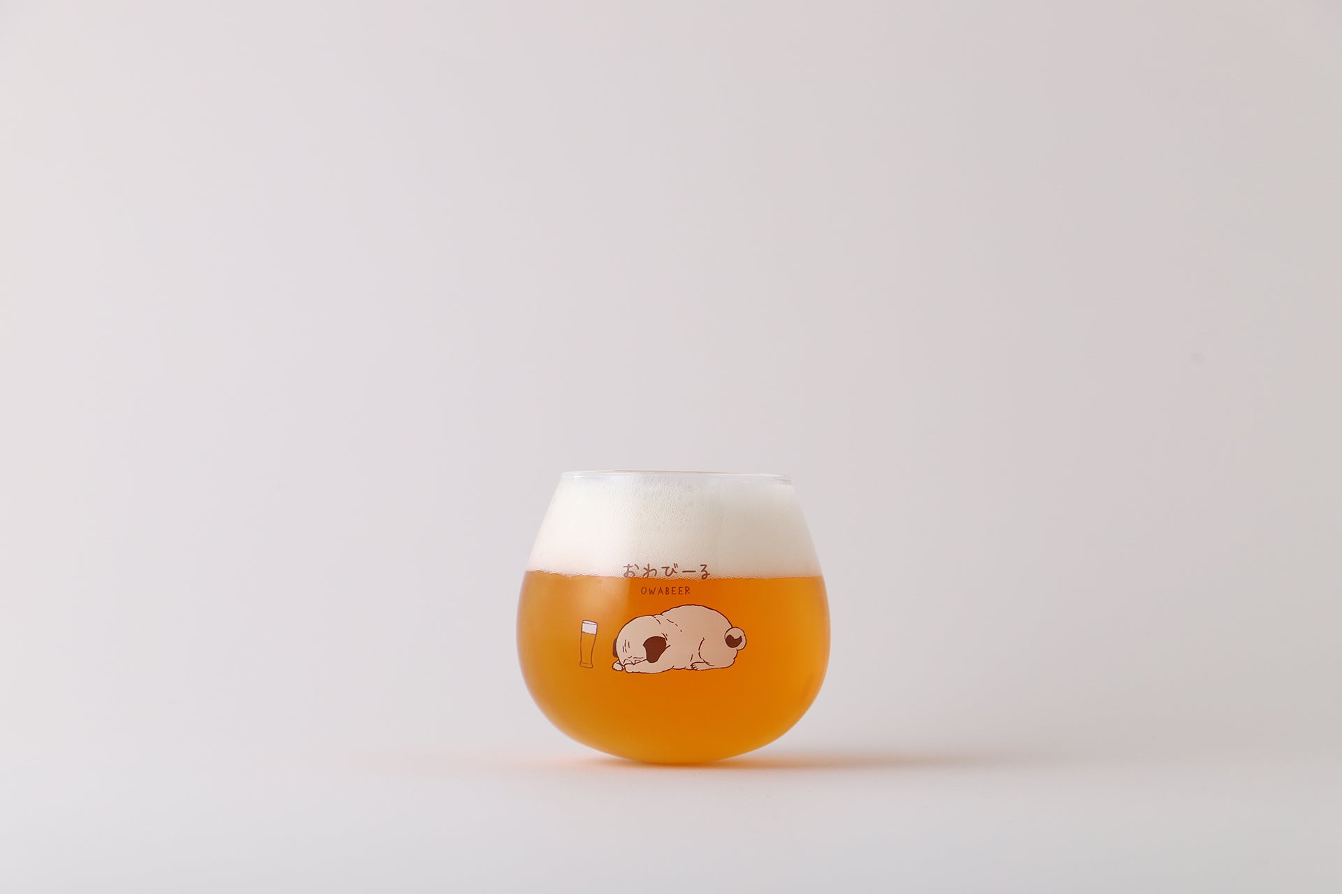 両手をついて謝っているかのようなパグの姿を描いた、チャーミングなグラス。ビールを注ぐと、イラストに描かれたグラスにもビールが注がれます。しょんぼりと丸まりながら「どうぞ」と1杯差し出されたら、飲まずにはいられません。