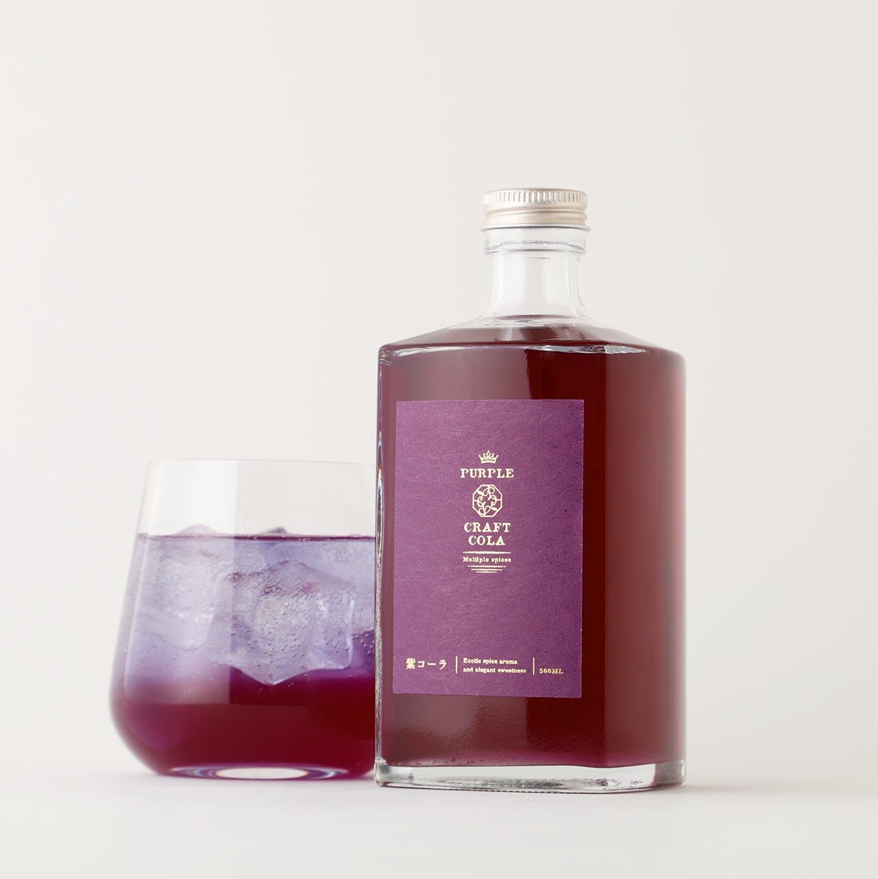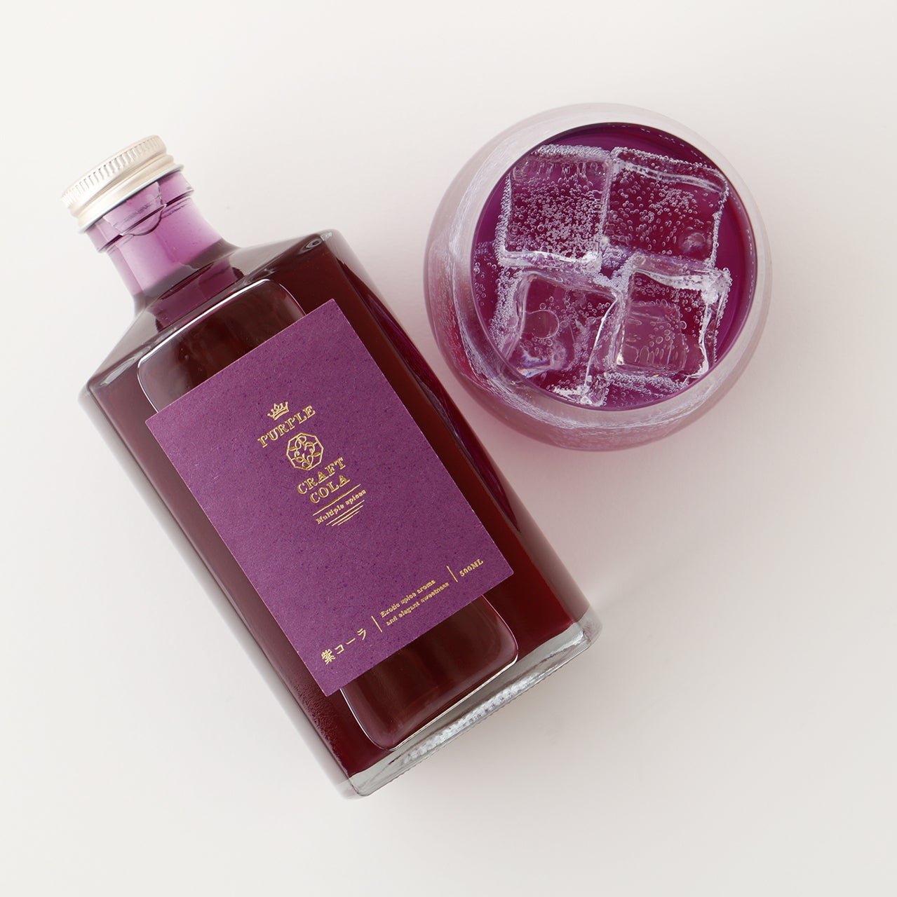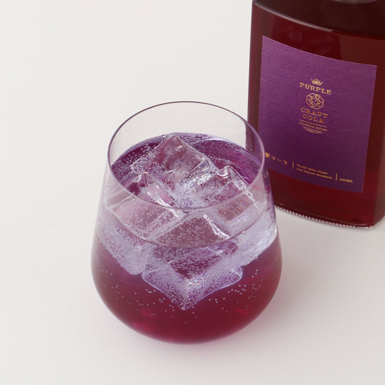 クラフトコーラとして楽しむなら、炭酸割り。鮮やかな紫色のクラフトコーラが楽しめます。