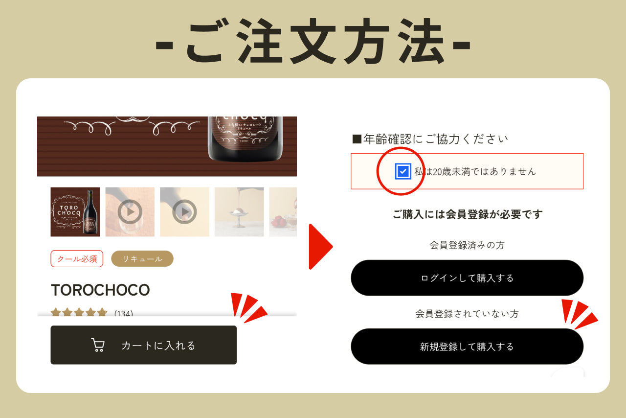 ③カートページで、年齢確認の欄のチェックをご確認ください。